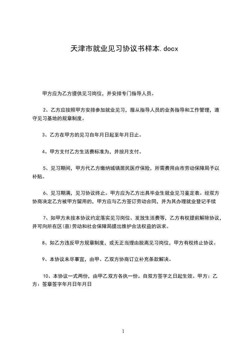 1、甲方应为乙方提供见习岗位,并安排专门指导人员。