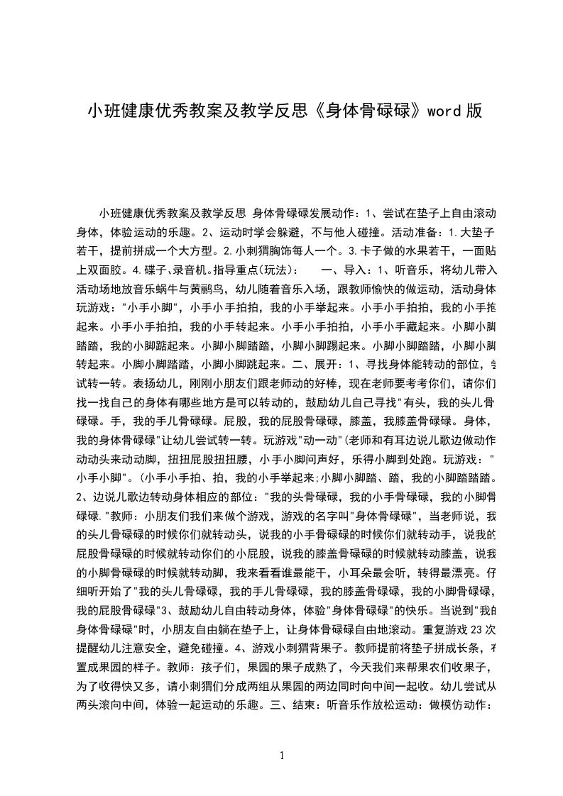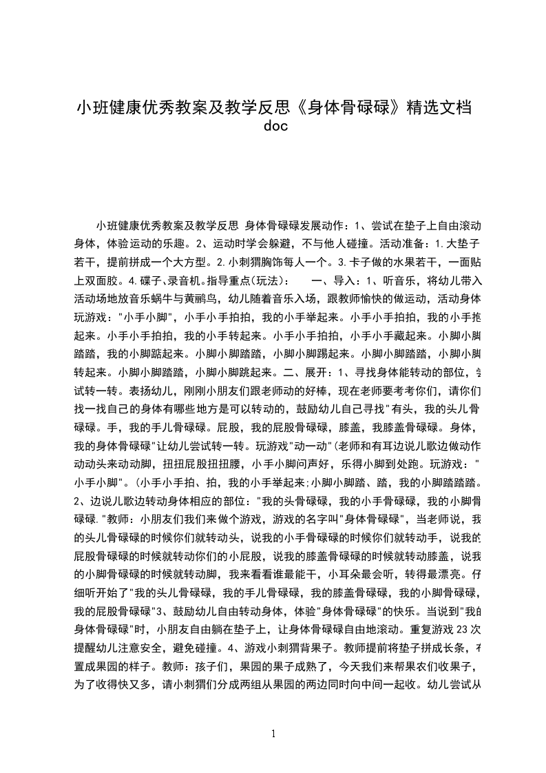 小班健康优秀教案及教学反思 身体骨碌碌发展动作: