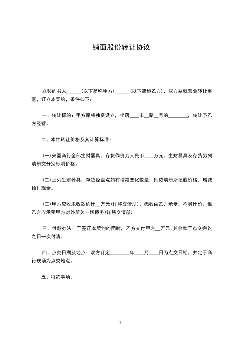 一、转让标的:甲方愿将独资设立,坐落____市__路__号的________,转让予乙方经营。