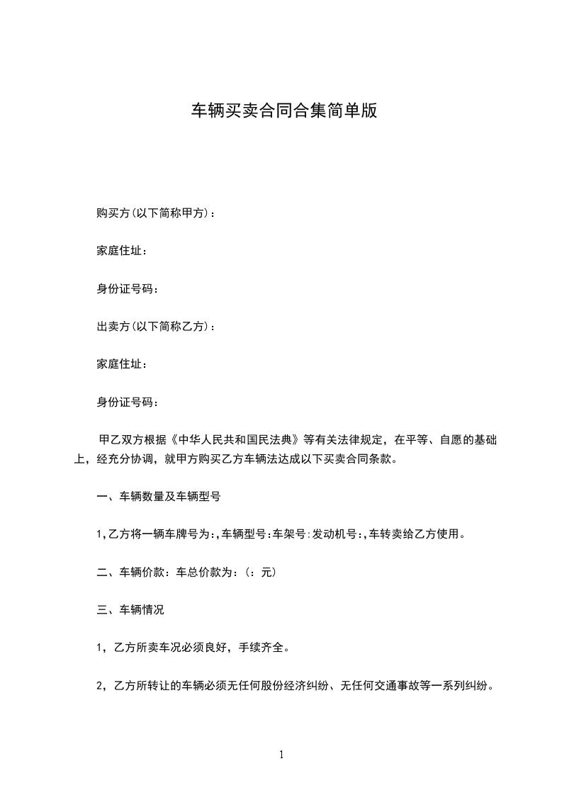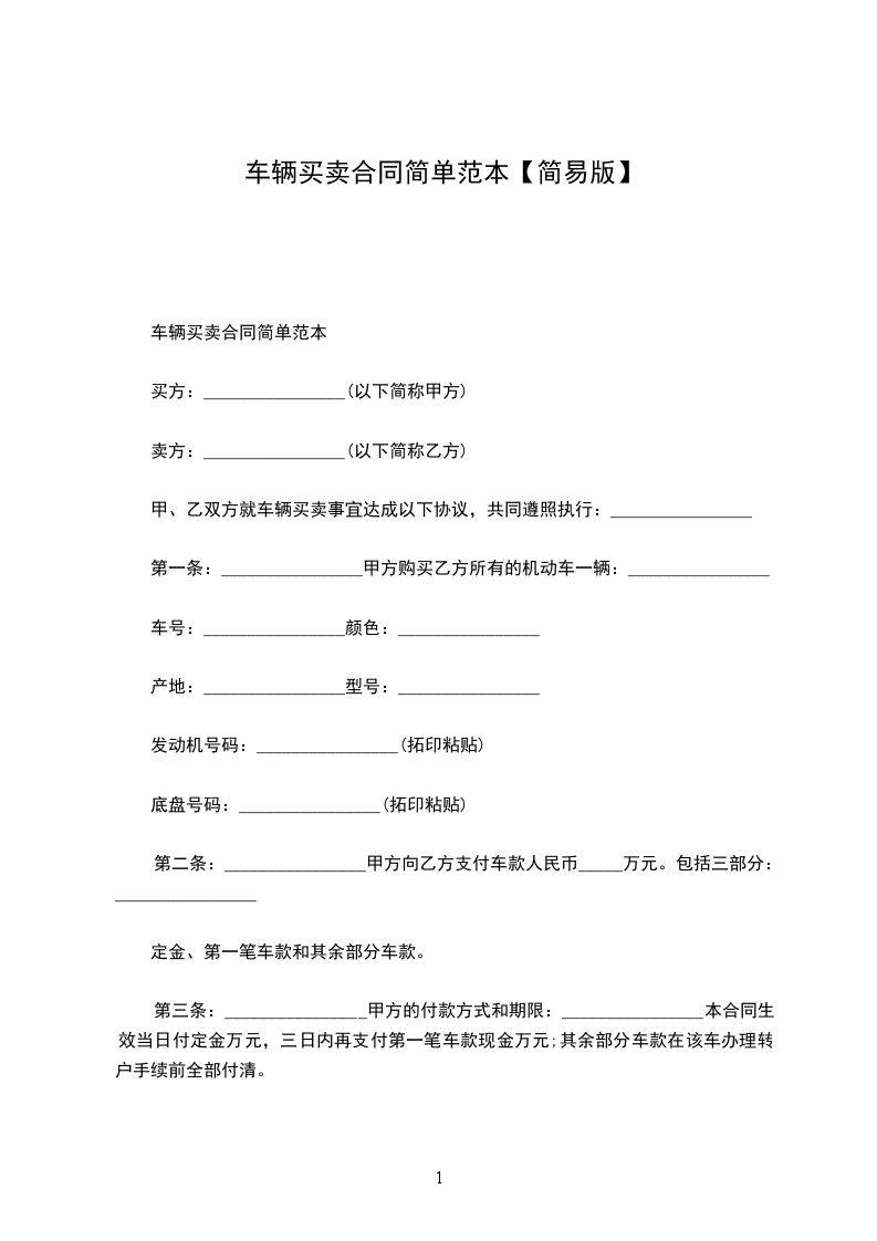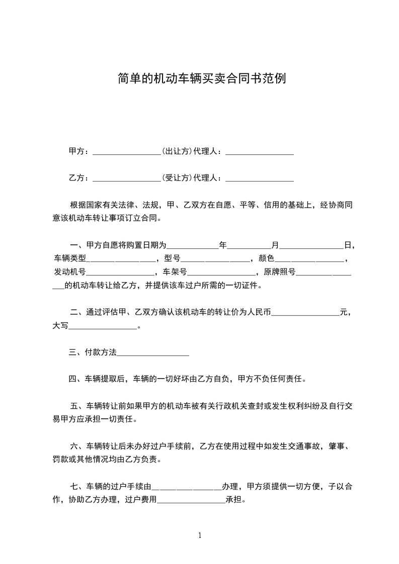 一、甲方将________车,车号为________________卖给乙方,发动机号码为________________,车架号为________________,颜色为,价格为(¥________________元)