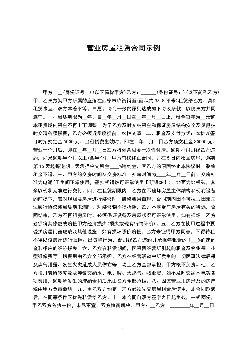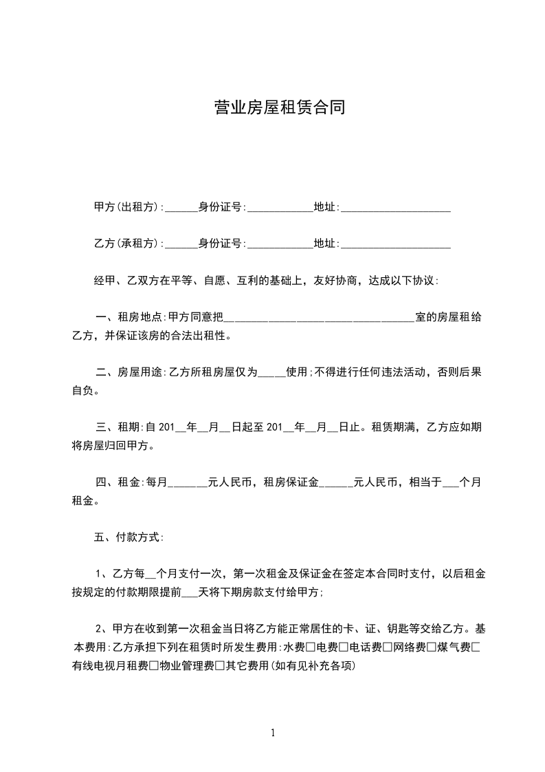 租赁房屋营业合同甲方:_乙方:_日期:_租赁房屋营业合同出租方:承租方: