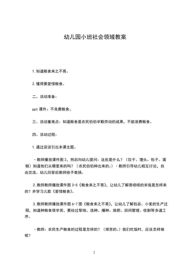 三、激发幼儿尊重炊事员、农民和爱惜粮食的情感。提问:这些味道鲜美的食物是谁做出来的?我们吃饭时应注意些什么?(节约粮食,不剩饭菜等)
