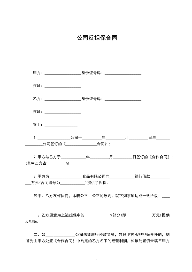 一、乙方愿意为上述担保中的_____________%部分(即_____________万元)提供反担保。