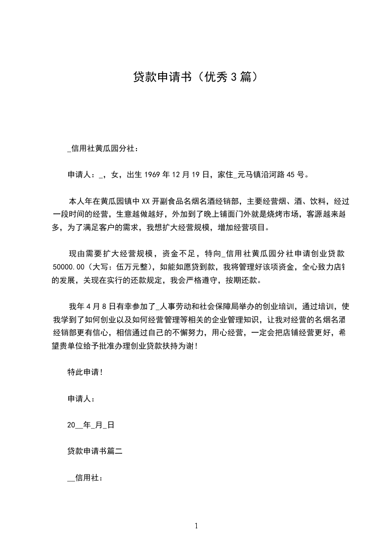 贷款申请书篇三