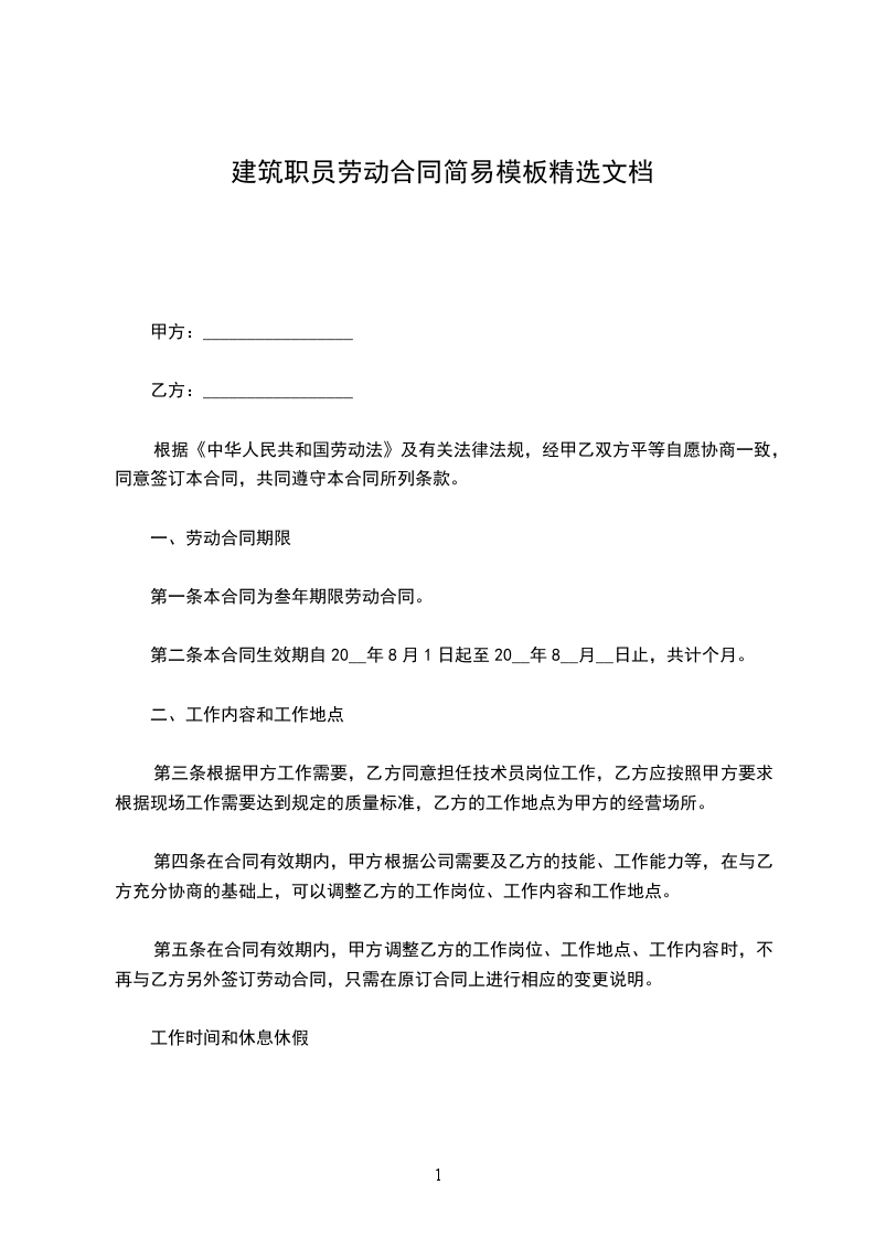 第二条本合同生效期自20__年8月1日起至20__年8__月__日止,共计个月。