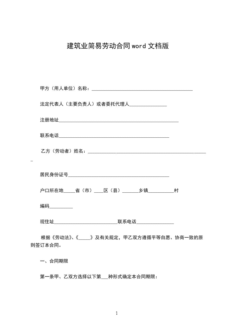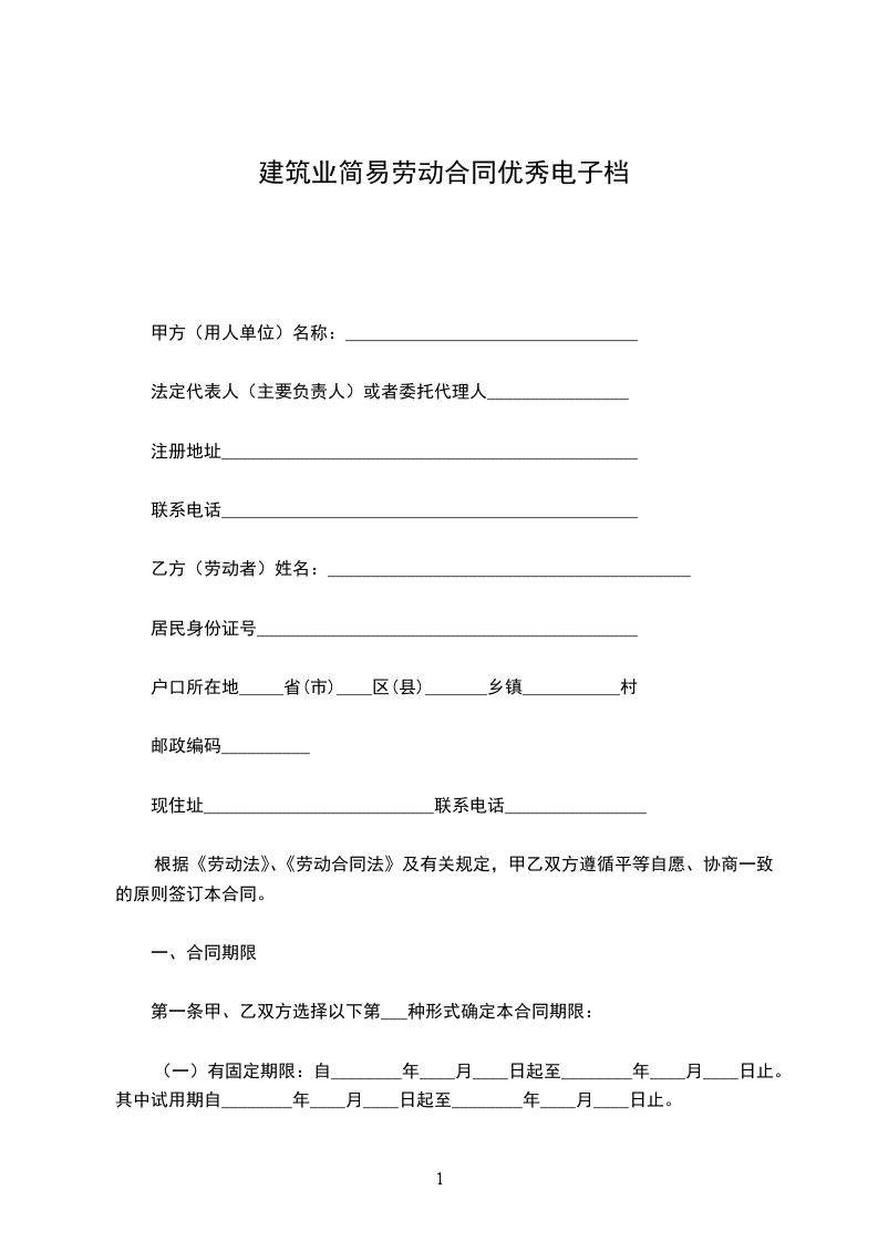 第一条本合同为叁年期限劳动合同。