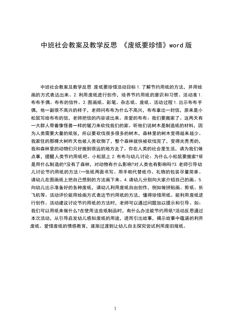 5.向幼儿出示准备好的各种废纸,请幼儿利用废纸自由创作,例如做拼贴画、剪纸、折飞机等。活动评价能用绘画方式表达节约用纸的方法,懂得珍惜用纸。能利用废纸进行创作。活动建议讨论节约用纸的方法时,老师可以通过问题加以提示和引导。如:我们可以用纸来做什么?在使用这些纸制品时,有什么办法能节约用纸?活动反思通过本次活动,从引导启发幼儿感知废纸的用途,进而引出故事,揭示故事中蕴涵的利用废纸、爱惜废纸的情感教育,逐渐过渡到让幼儿自主探究尝试利用废旧报纸。