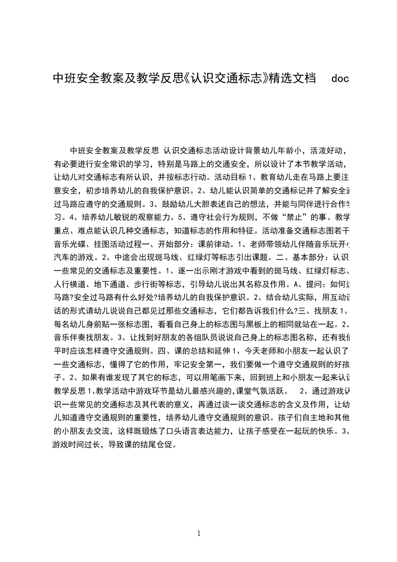 中班安全教案及教学反思 认识交通标志活动设计背景幼儿年龄小,活泼好动,有必要进行安全常识的学习,特别是马路上的交通安全,所以设计了本节教学活动,让幼儿对交通标志有所认识,并按标志行动。活动目标
