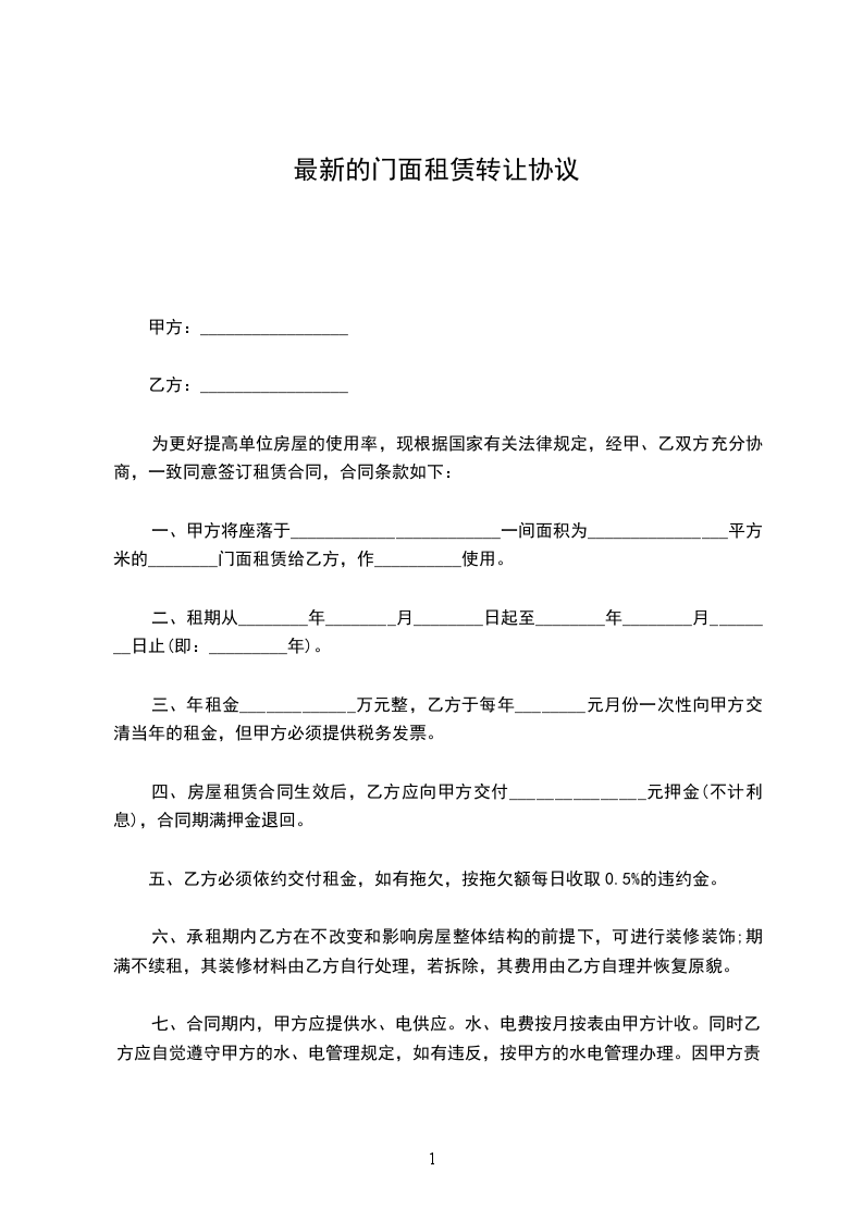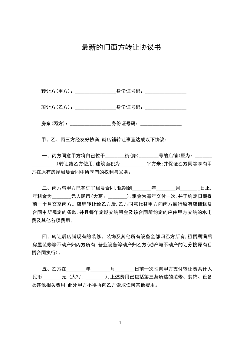 一、转让标的:甲方愿将独资设立,坐落____市__路__号的________,转让予乙方经营。