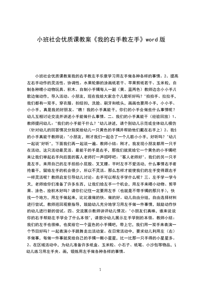 小班社会优质课教案我的右手教左手乐意学习用左手做各种各样的事情。