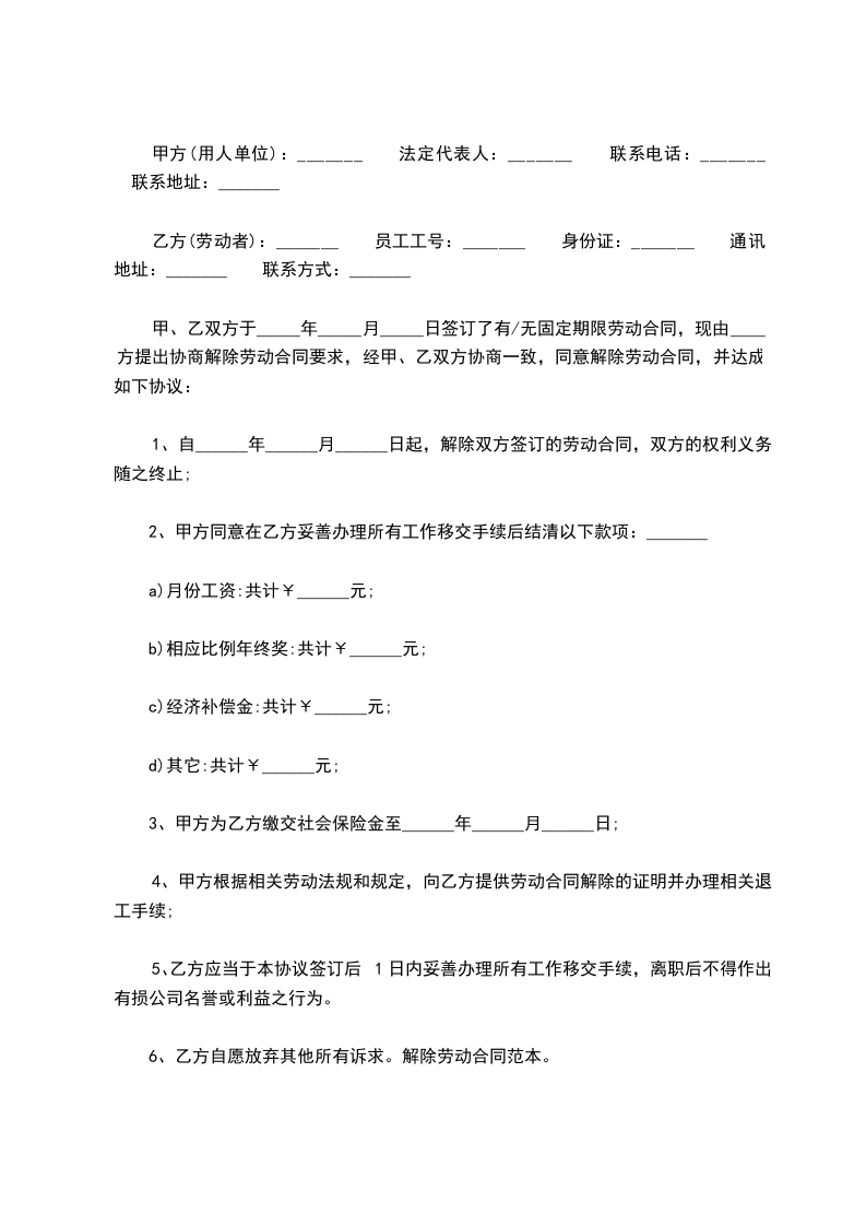 一:甲乙双方自愿解除上述的《合作协议书》;