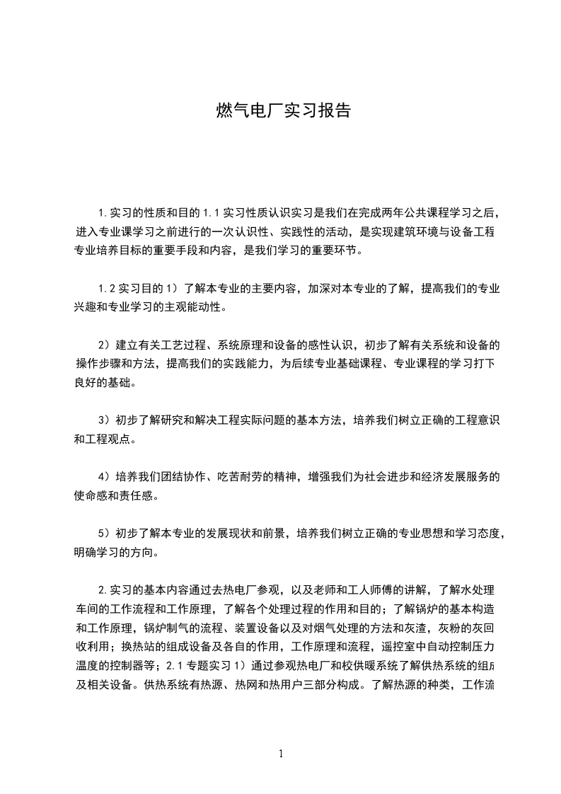 1.实习的性质和目的1.1实习性质认识实习是我们在完成两年公共课程学习之后,进入专业课学习之前进行的一次认识性、实践性的活动,是实现建筑环境与设备工程专业培养目标的重要手段和内容,是我们学习的重要环节。