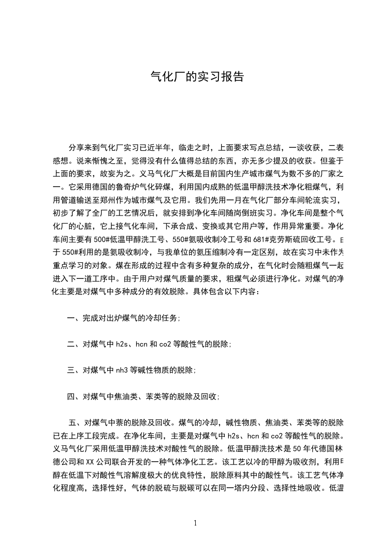 2)通过对XX集团人工制气厂的参观及工人师傅的讲解了解燃气制造及输配的有关知识。了解燃气的种类、主要成分及其特点;天然气成气机理及输配的有关知识;人工制气的工艺流程及设备组成及制气、输气和用气的相关的安全的知识。