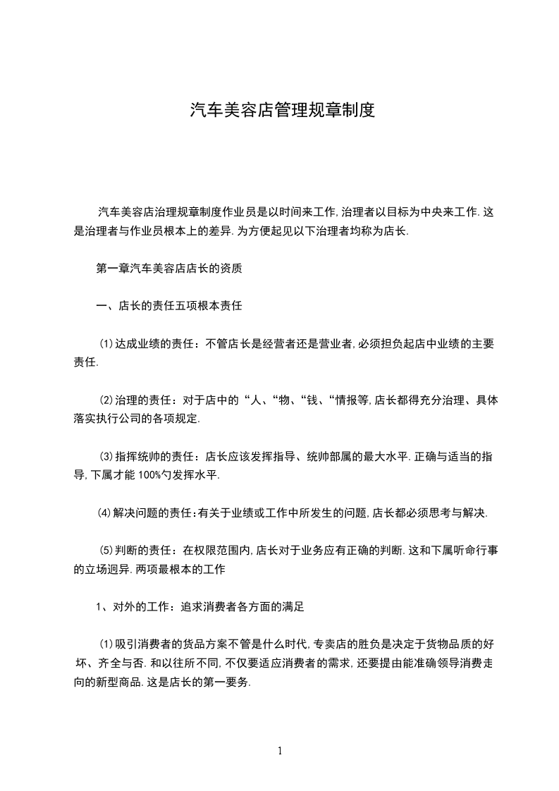 汽车美容店治理规章制度作业员是以时间来工作,治理者以目标为中央来工作.这是治理者与作业员根本上的差异.为方便起见以下治理者均称为店长.