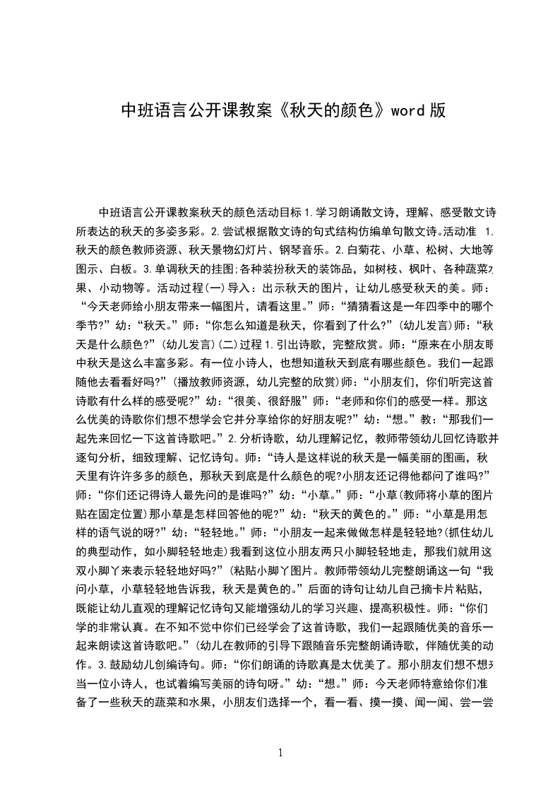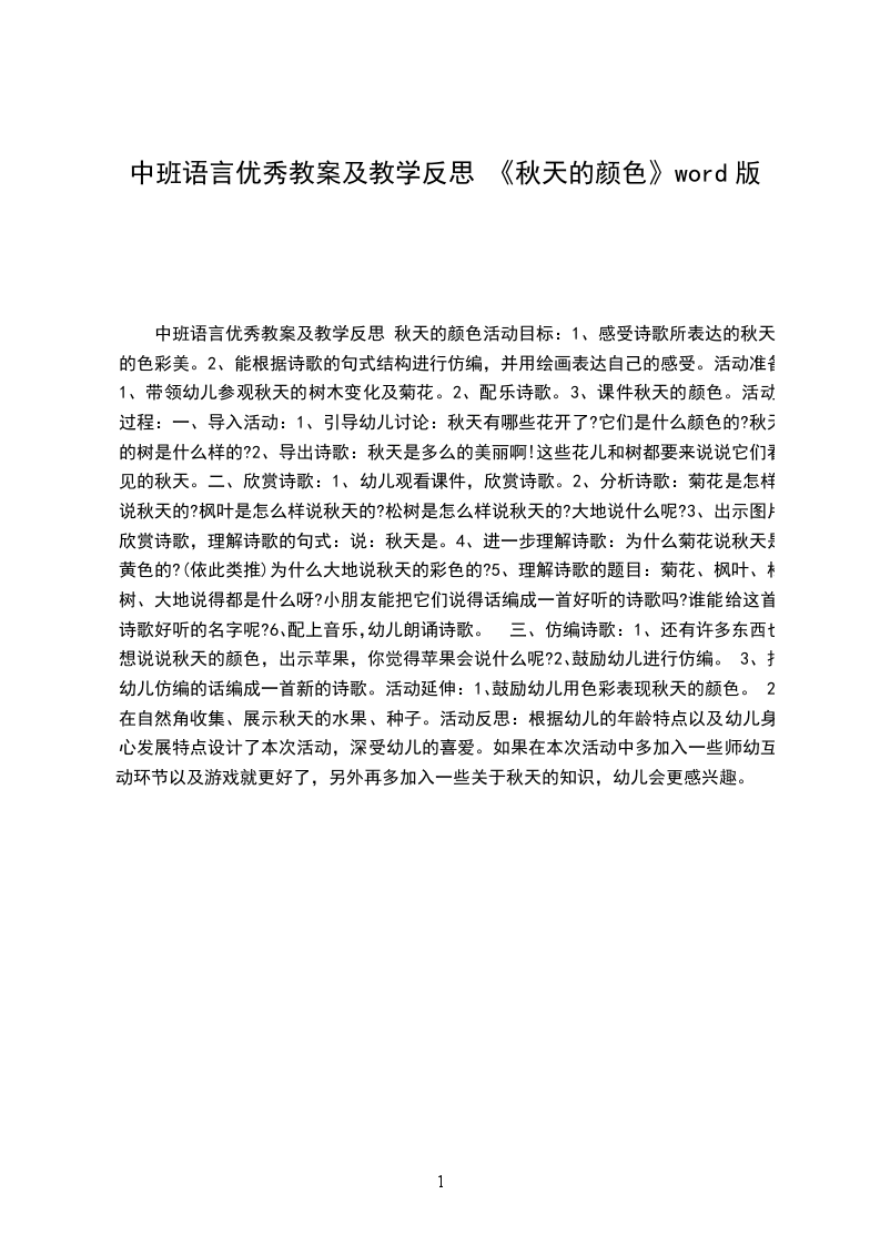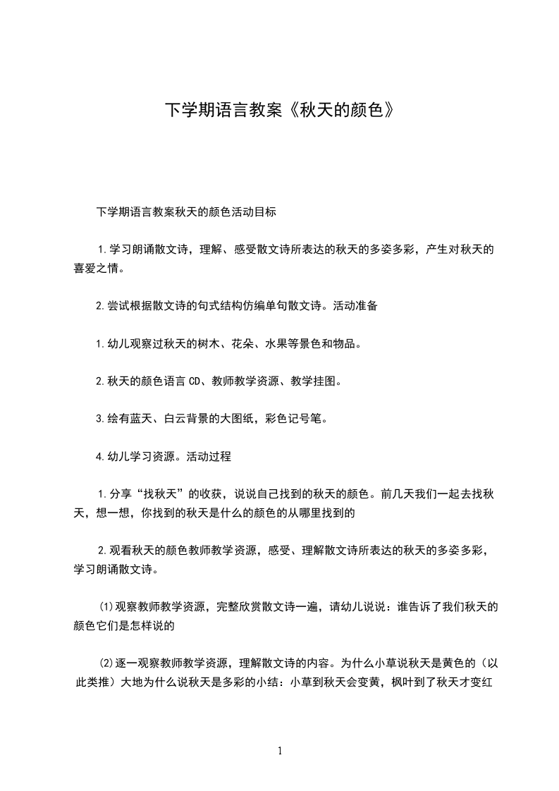 中班语言优秀教案及教学反思 秋天的颜色活动目标: