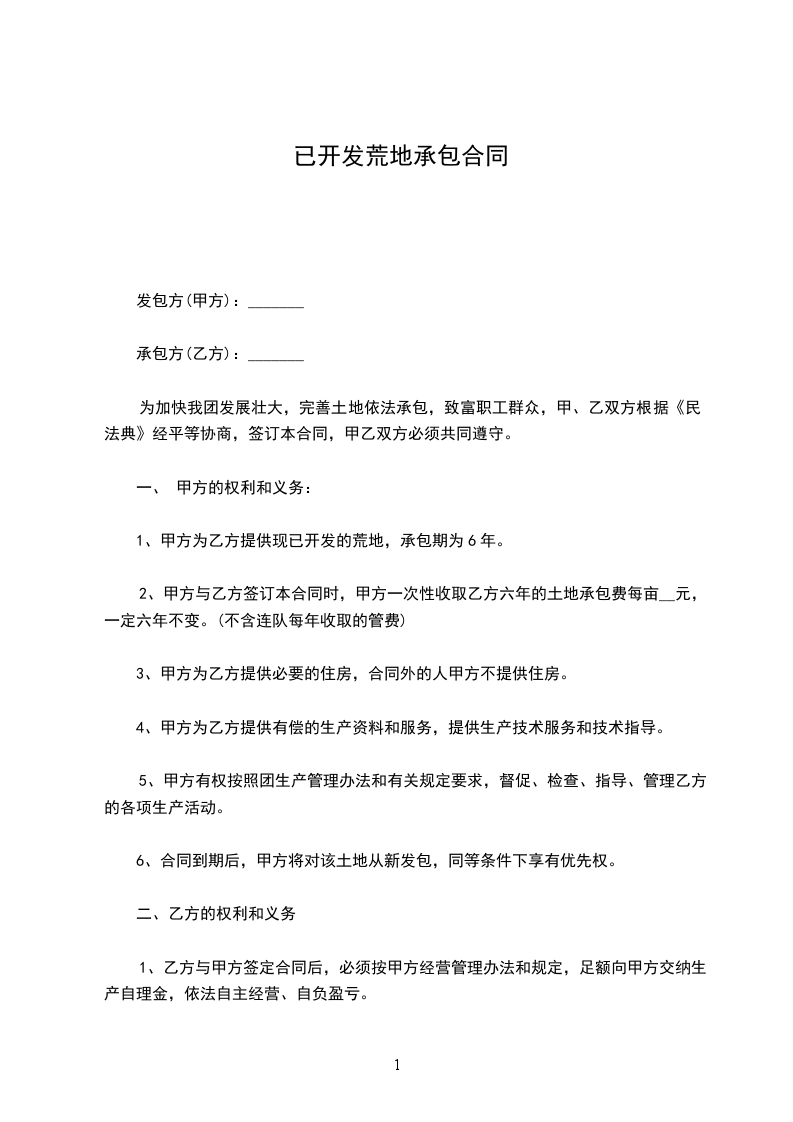 开荒保洁承包合同甲方:_乙方:_日期:_开荒保洁承包合同甲方(发包方):乙方(承包方):