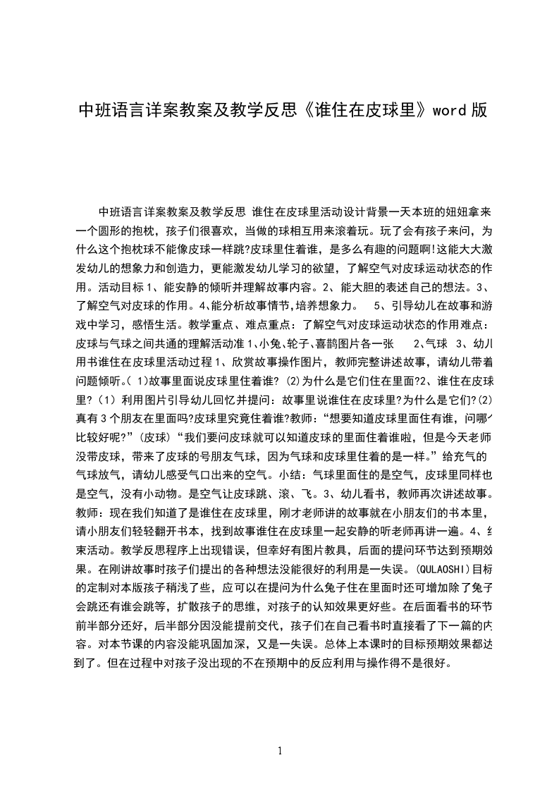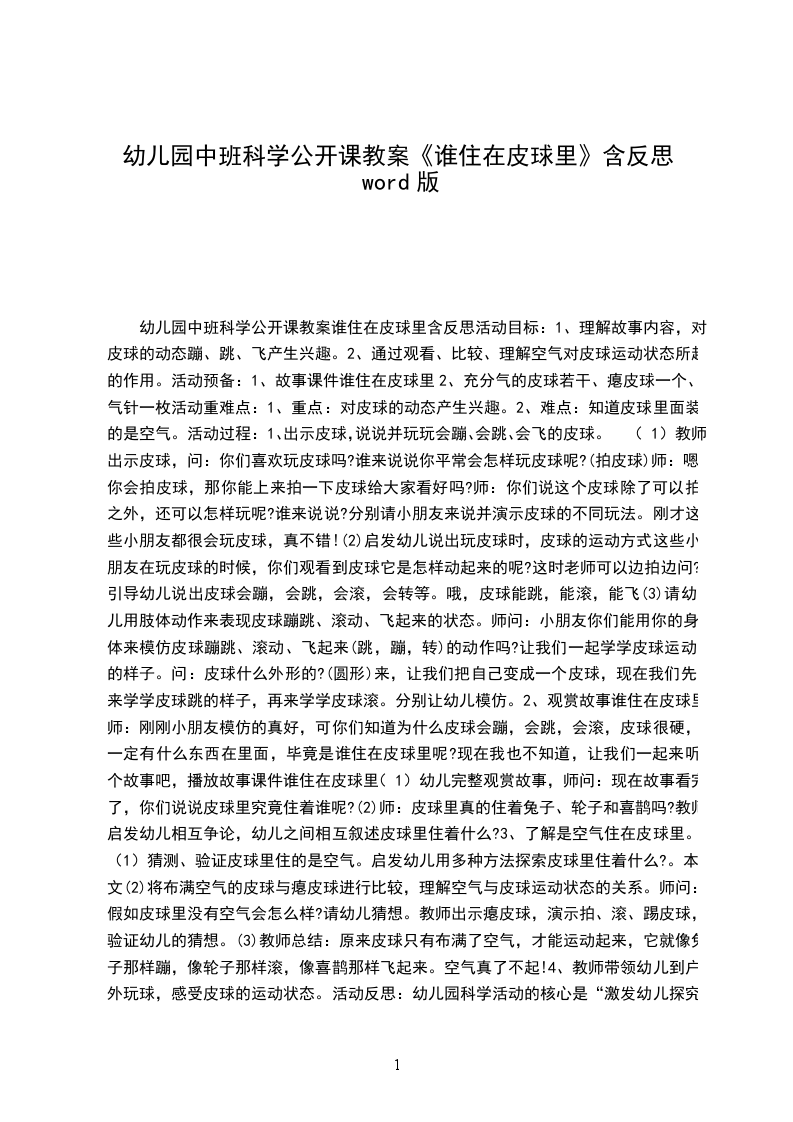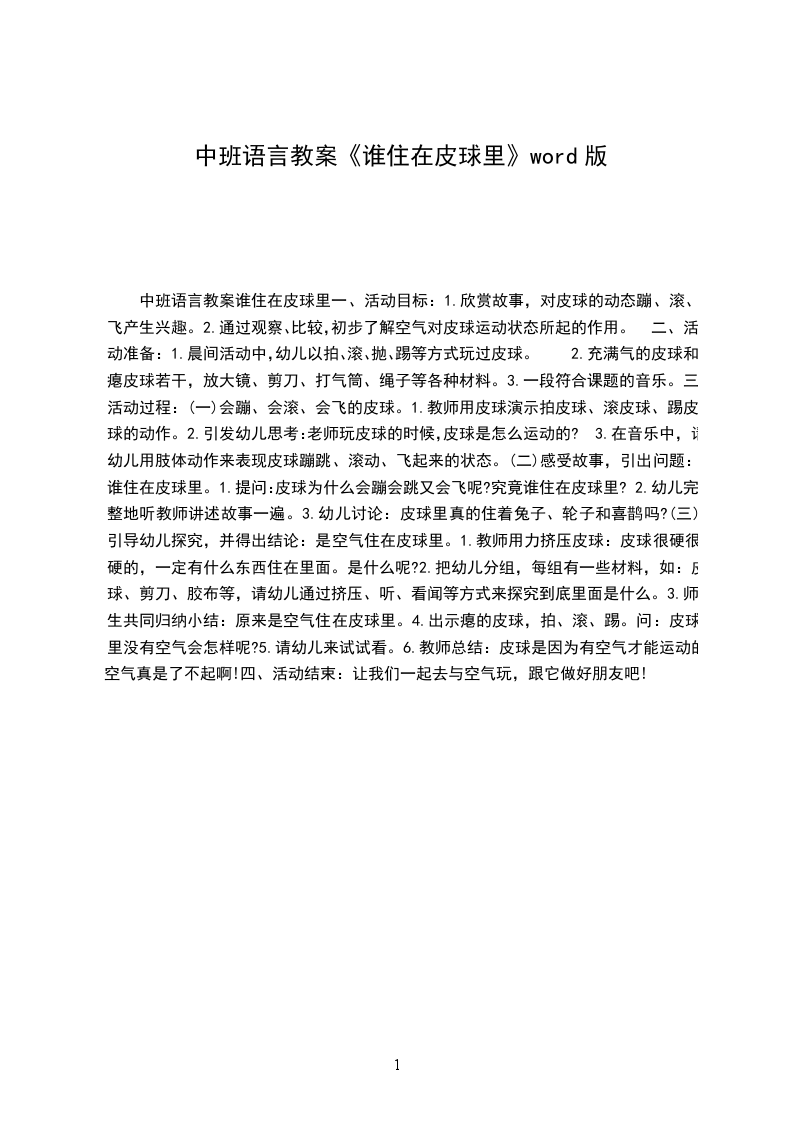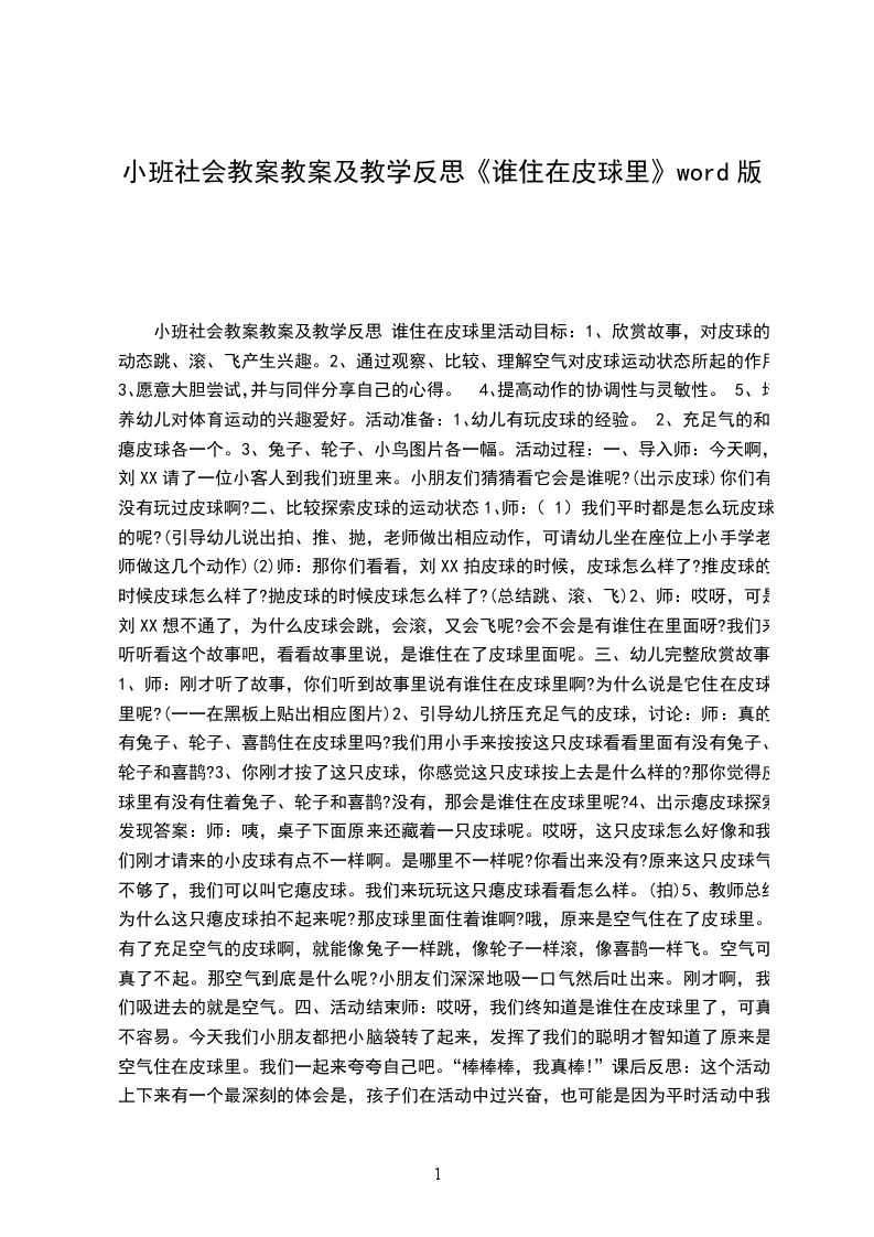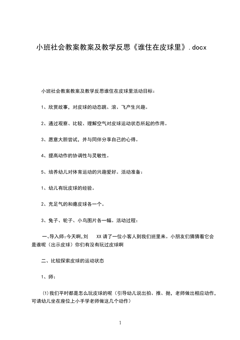 小班社会教案教案及教学反思 谁住在皮球里活动目标: