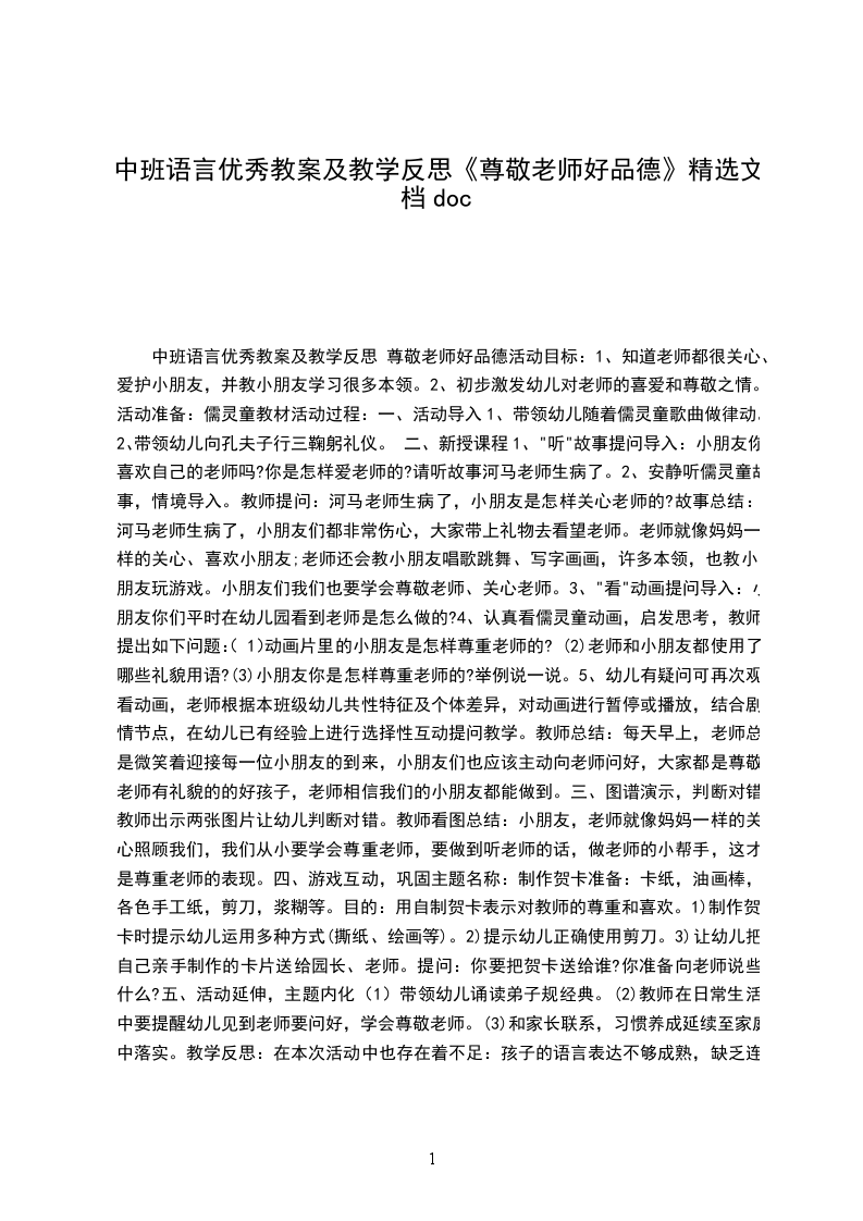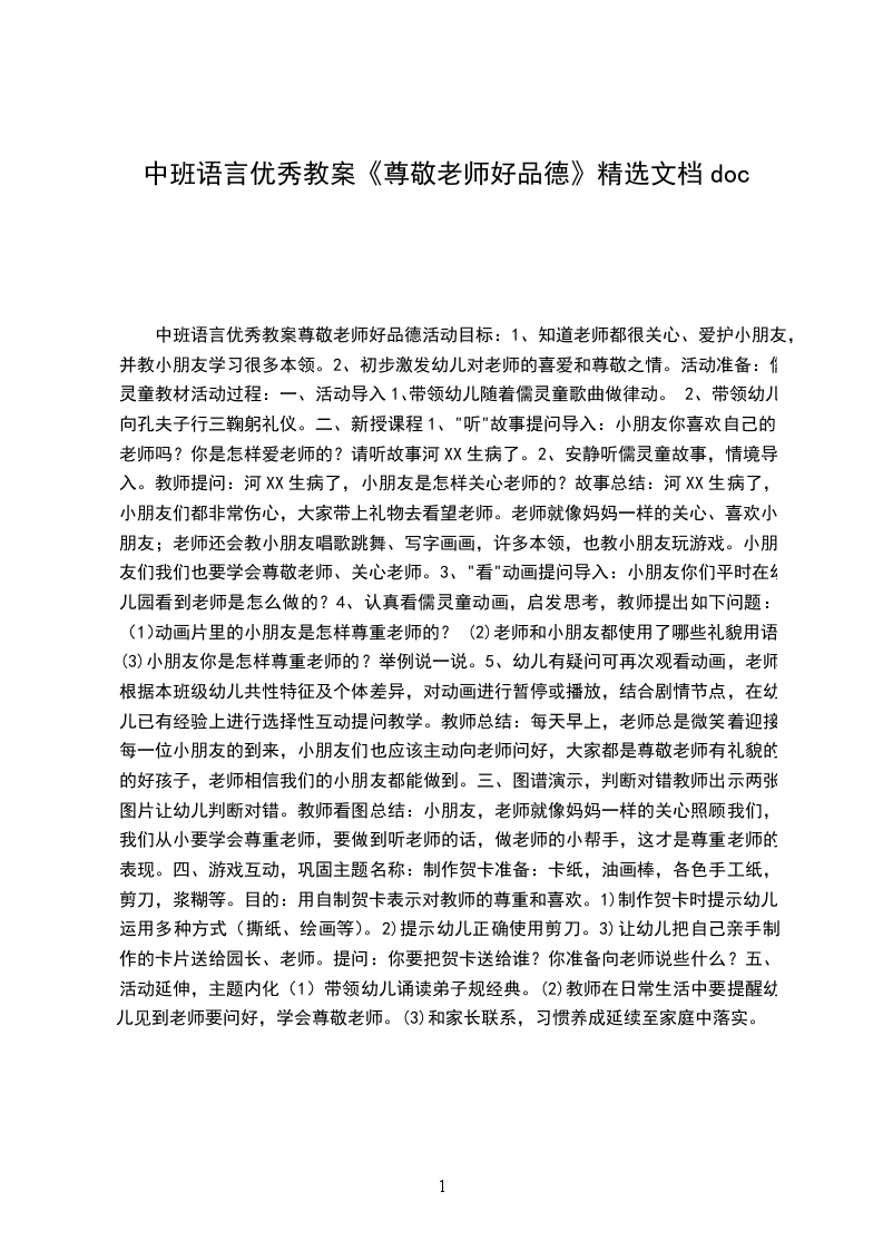 中班语言优秀教案尊敬老师好品德活动目标: