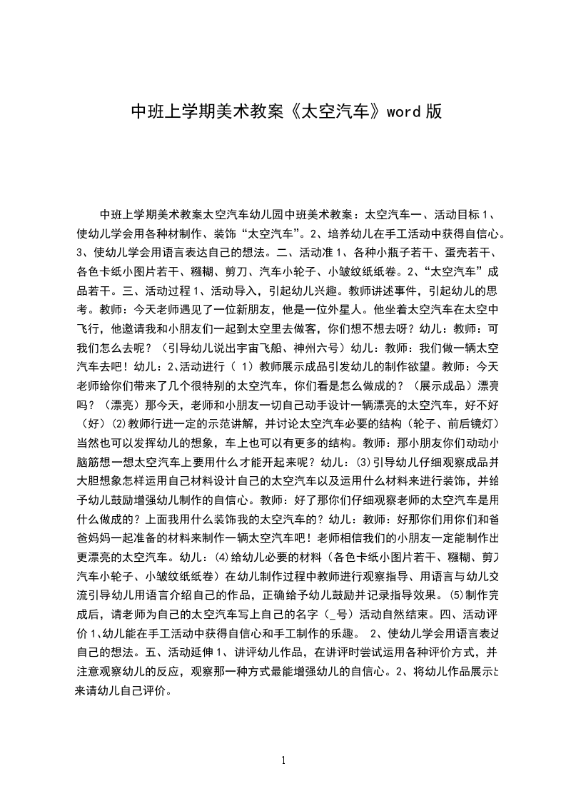 中班上学期美术教案太空汽车幼儿园中班美术教案:太空汽车