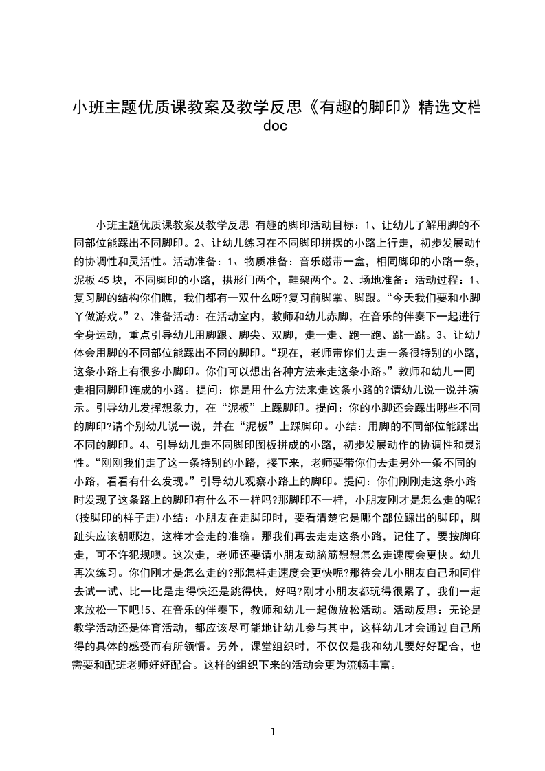 小班主题优质课教案及教学反思 有趣的脚印活动目标: