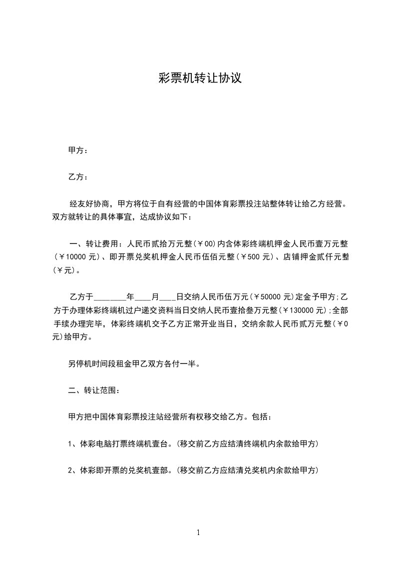2、体彩即开票的兑奖机壹部。(移交前乙方应结清兑奖机内余款给甲方)