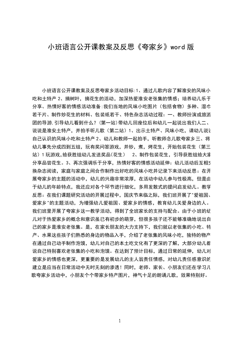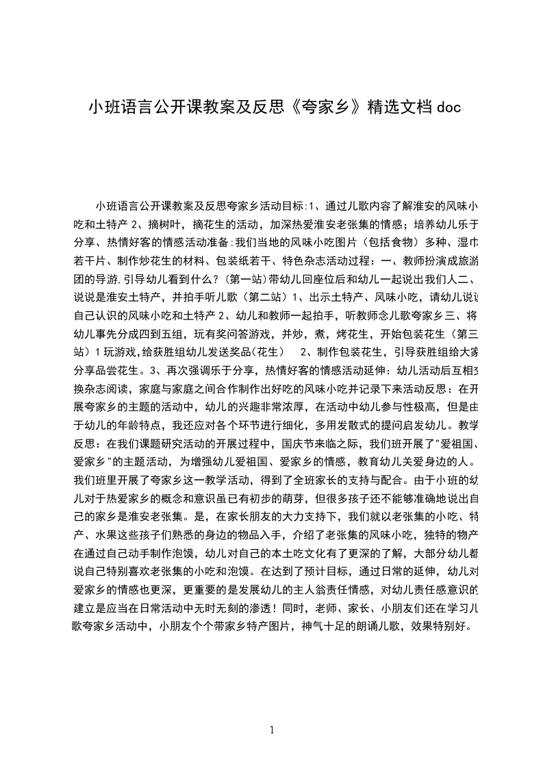 小班语言公开课教案及反思《夸家乡》精选文档doc