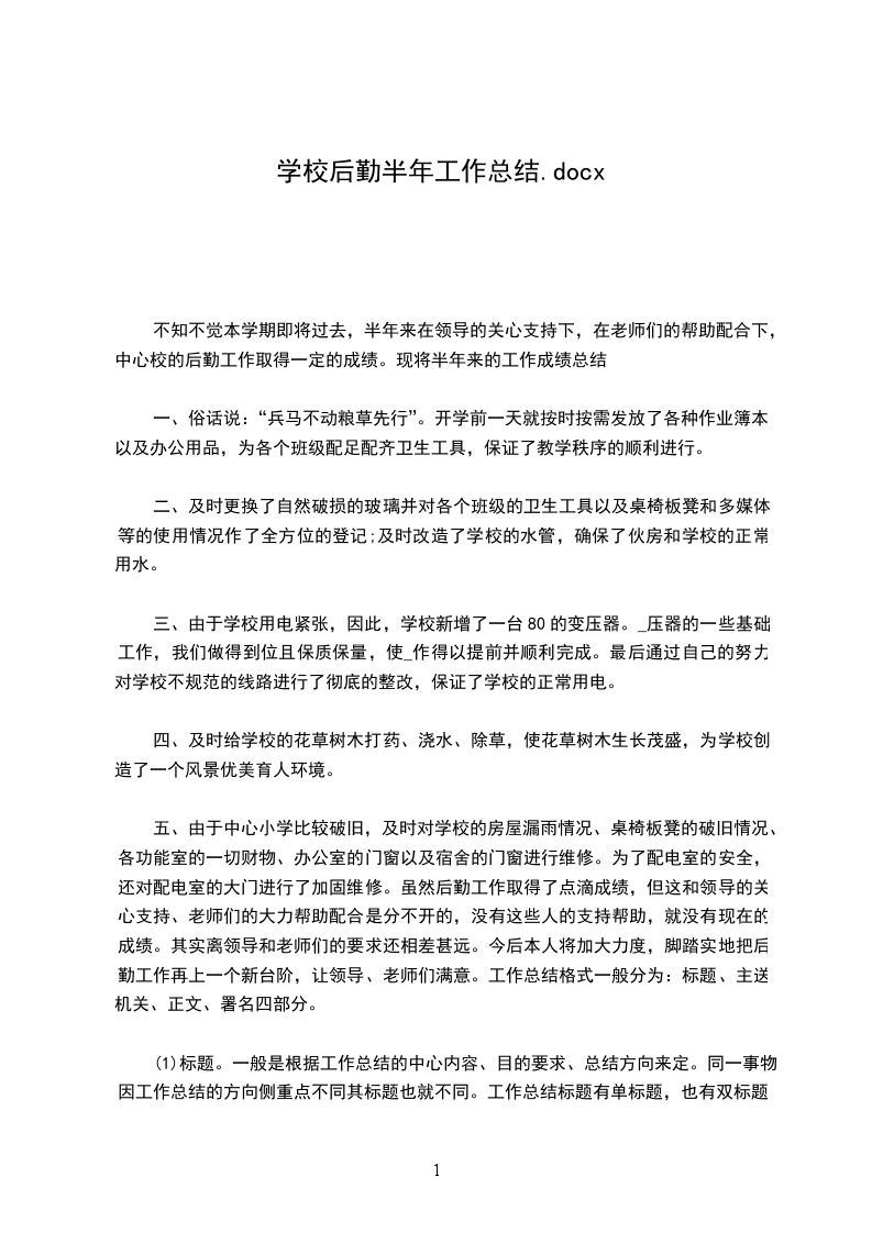 一、后勤工作经过在学校这样的环境下工作,我觉得自己首先也要有高素质吧,因为每天接触的都是老师学习,素质也是基本的东西,我一直认为自己的素质是需要不断的提高,不管是在平时的生活,还是与人交流的时候,都始终保持着,素质第一,工作第二,我自己的素质提高起来至关重要,或许一个小小的举动就会让人刮目相看。再一个就是态度,工作的一个态度,学校的后勤工作是需要工作着良好的态度的,这一点我相信所有的机构都是这样,态度端正起来在工作的时候就不会出什么问题,我始终坚信着我的态度会决定着工作做的好与不好,这是一个必然的因素,半年来的工作我一直端正态度在认真工作,友好的跟学校的其它部门协调工作,自己能够做的尽量的配合,我知道这是一个相互的,我尽量的去配合别部门工作,我自己的工作就能够顺利一点。在供应各种物资方面,我一直按照学校的要求办事,不拖欠物资,改置办的就一定第一时间置办下来,这不仅仅是我们的一个工作经过,更过的是一个负责任的心态,我严格的遵守规矩,一切按照学校的意愿办事,不私自决定什么事情,这样就不会乱了,有更好的想法我会先说明,向学校,我也知道在接下来的工作中自己的任务依然很重,我会继续的努力的。