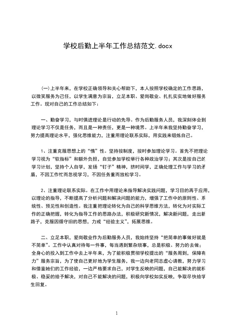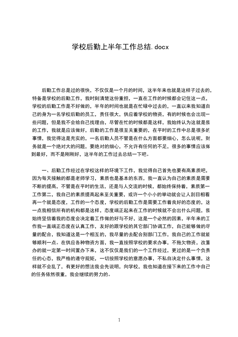 后勤工作总是过的很快,不仅仅是一个月的时间,这半年来也就是这样子过去的,特备是学校的后勤工作,我时刻清楚这份重担,一直在工作的时候都会记住这一点,学校的后勤工作是不好做的,半年的时间也就是在忙碌中过去的,一直以来我知道自己的身为一名学校后勤的员工,责任很大,供应着学校的物资,有的时候也会出现一些问题,但是我不会给自己找理由,尽管在忙的时候都是这样,我始终认为这就是我的工作,我就是应该做好,后勤的工作是很至关重要的,在平时的工作中总是很多的事情,我觉得这是充实的,一名后勤人员不管是在什么方面都要细心,怎么说呢,财务就是一个绝对大的问题,要绝对的细心,不允许有任何的不足,很多的事情应该做到最好,而不是刚刚好,这半年的工作过去总结一下吧。