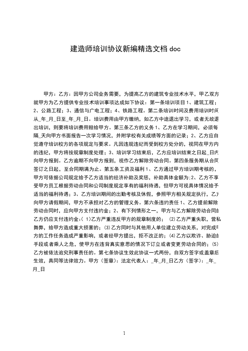 甲方:乙方:因甲方公司业务需要,为提高乙方的建筑专业技术水平,甲乙双方就甲方为乙方提供专业技术培训事项达成如下协议: