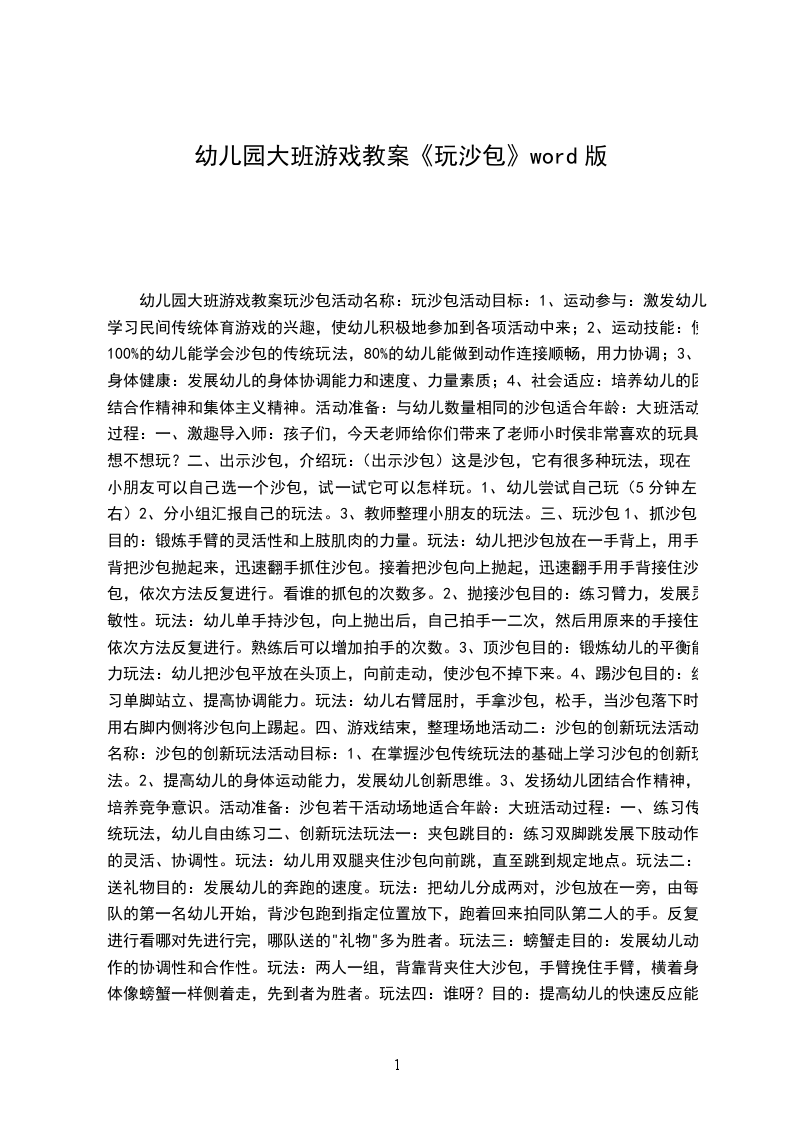 四、延伸活动:幼儿用沙自制玩具沙包、沙锤等,进一步扩大幼儿对沙的认识。教学反思这节活动课,效果还不错,不仅调动了每个幼儿的积极性,而且师幼配合的非常好,在游戏活动中让幼儿通过尝试操作活动,进一步感知沙的特性。通过这次活动,使幼儿在情感、态度、能力、知识方面得到了全面、自主的发展。达到了预期目标。如果重新上这节课,我会注意幼儿语言表达能力的培养,以纠正幼儿在回答问题时夹杂一些方言习惯。