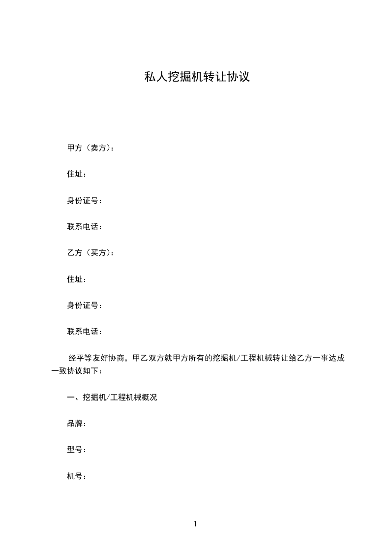 经平等友好协商,甲乙双方就甲方所有的挖掘机/工程机械转让给乙方一事达成一致协议如下: