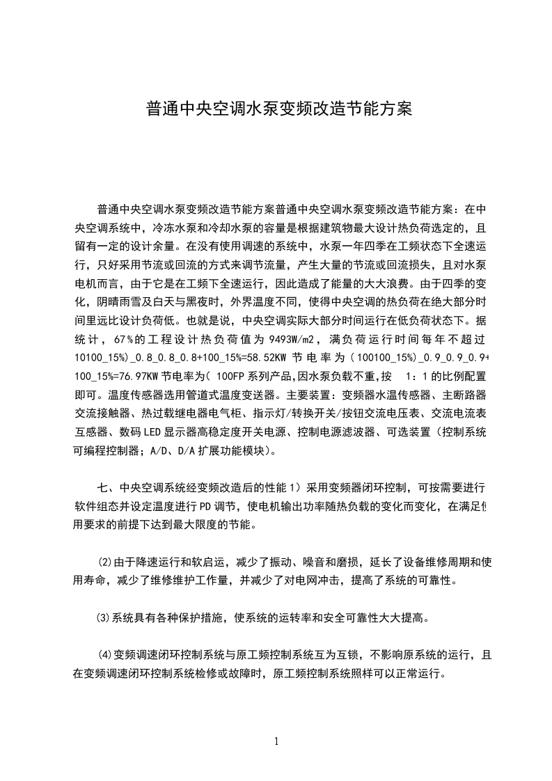 1、水泵变频节电直接在水泵电机前加装变频器通过人工调整频率,去除水泵余量而节能。