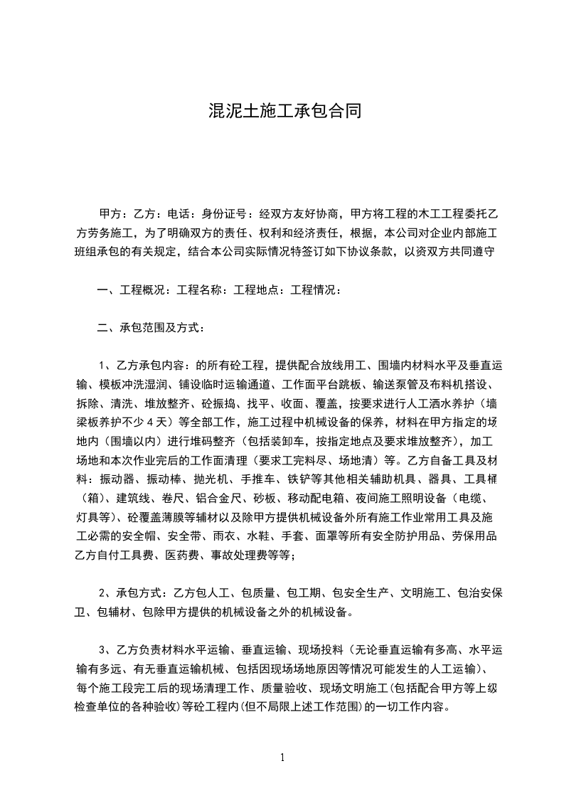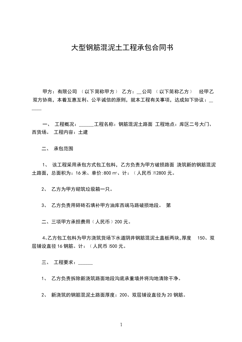 2、工程单价:混凝土3;(大写:每立方米伍拾元整),其它项目单价日后发生另定。