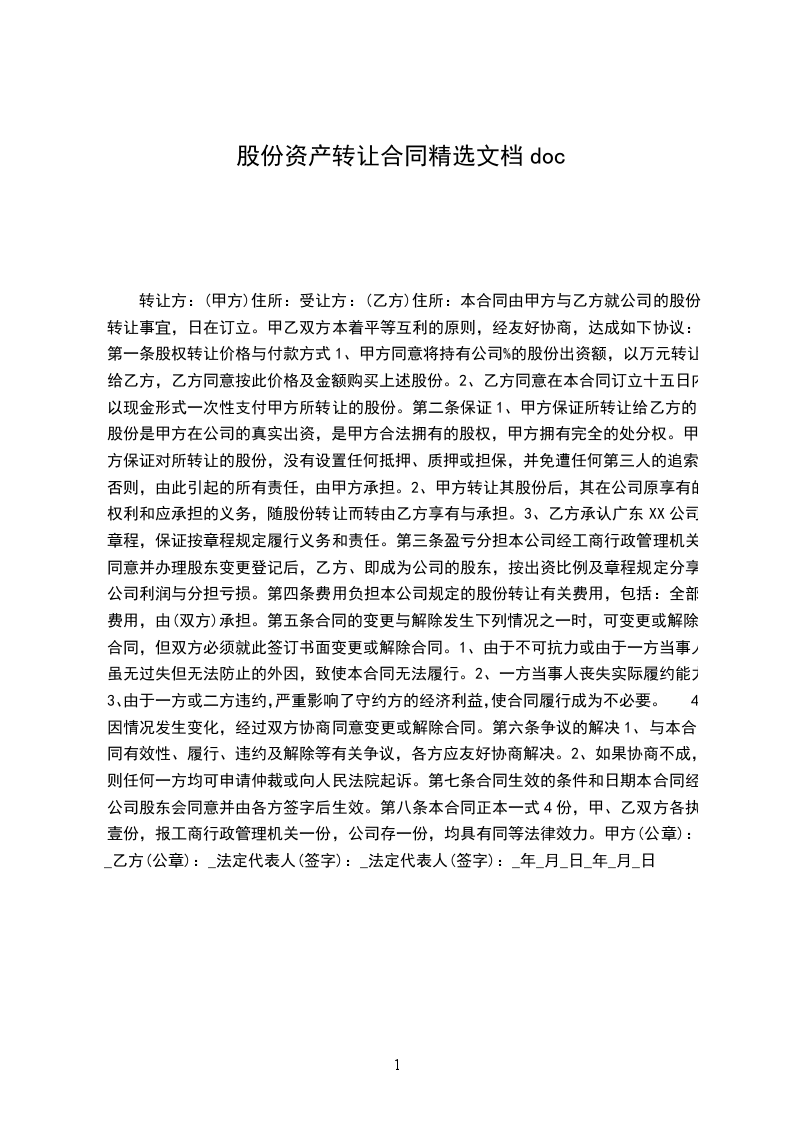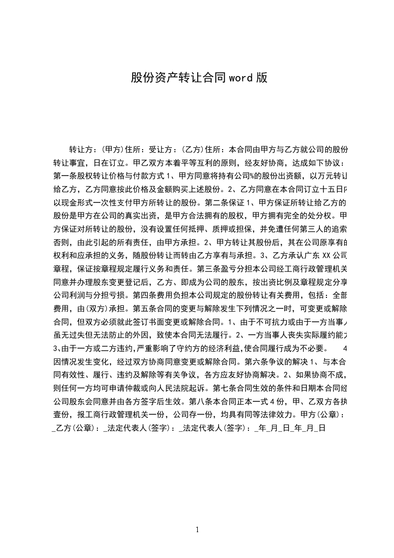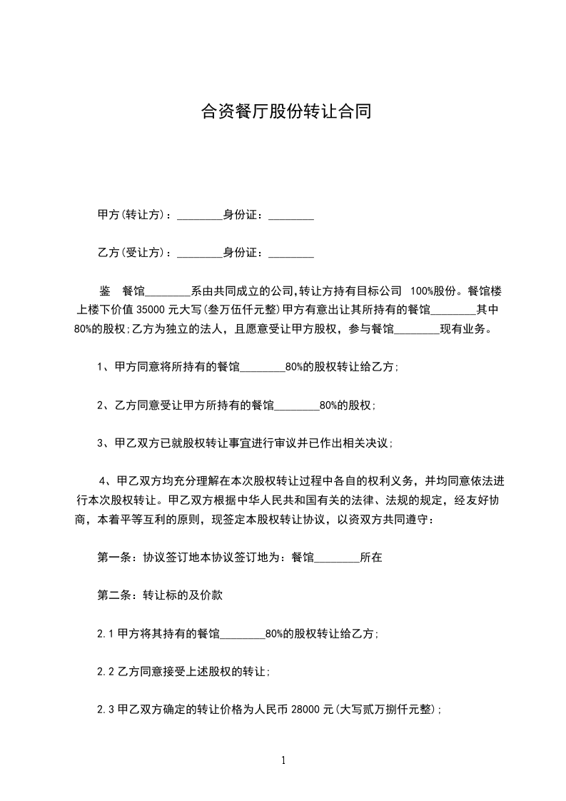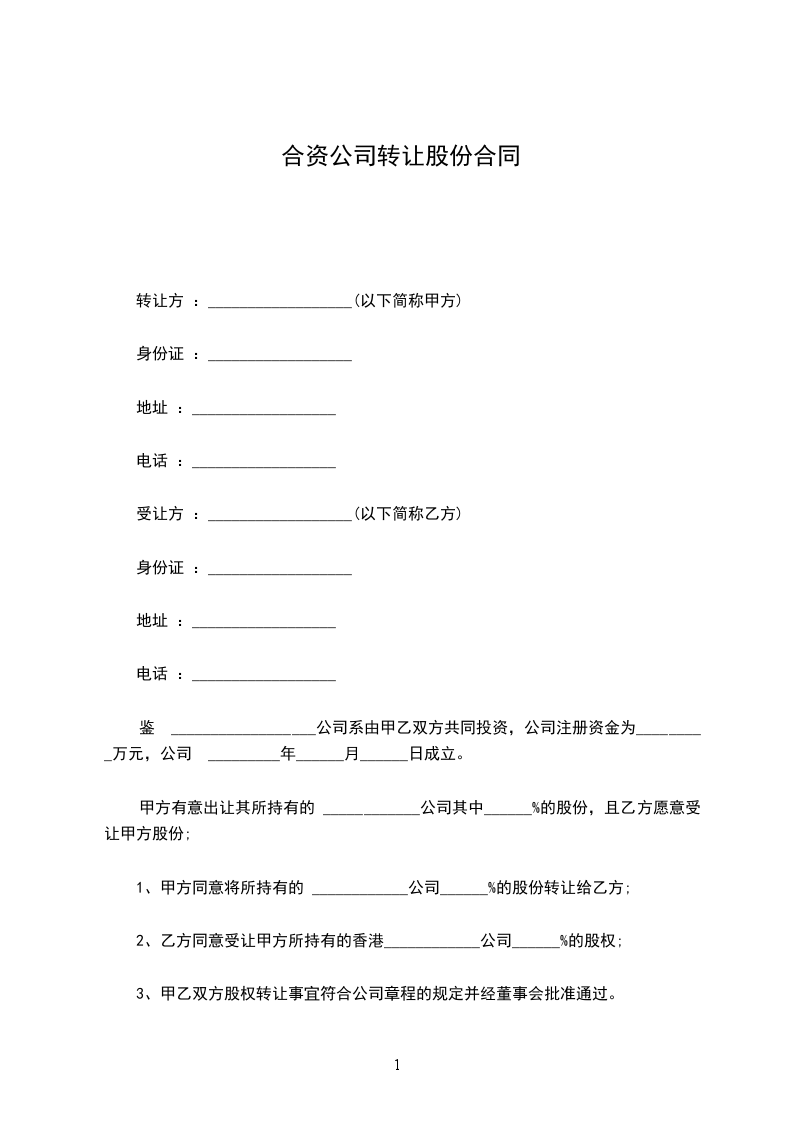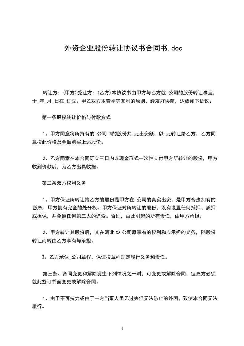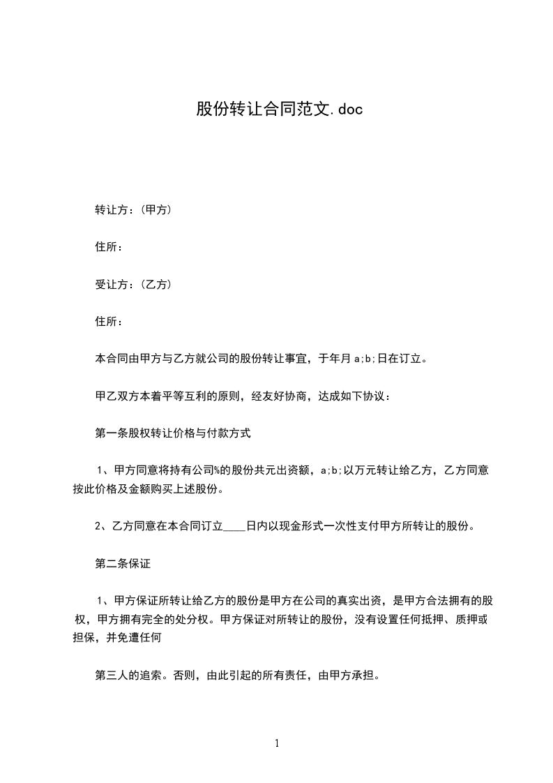 1、甲方同意将持有公司%的股份出资额,以万元转让给乙方,乙方同意按此价格及金额购买上述股份。
