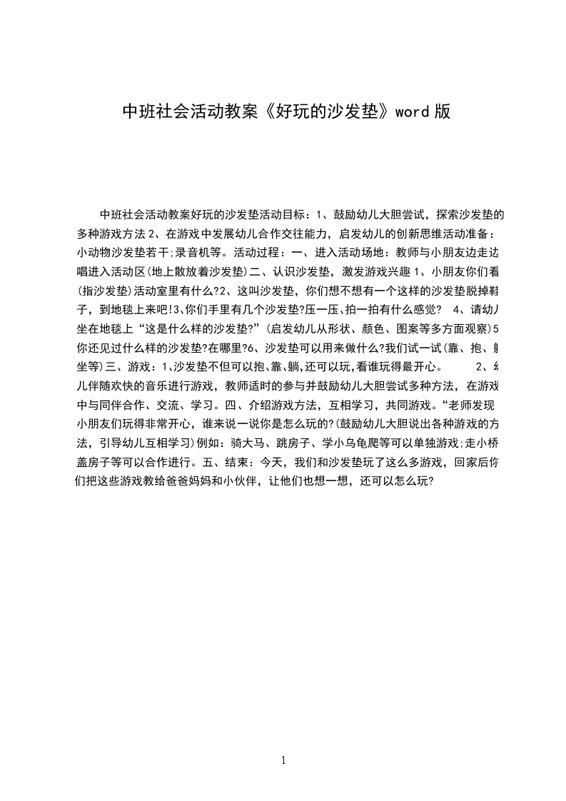中班社会活动教案好玩的沙发垫活动目标: