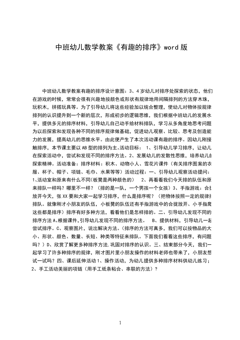 中班幼儿数学教案有趣的排序设计意图: