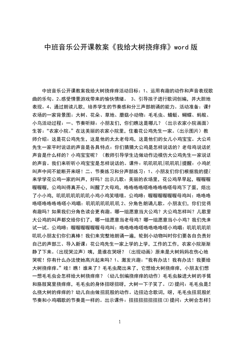 中班音乐公开课教案我给大树挠痒痒活动目标: