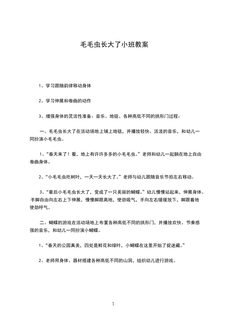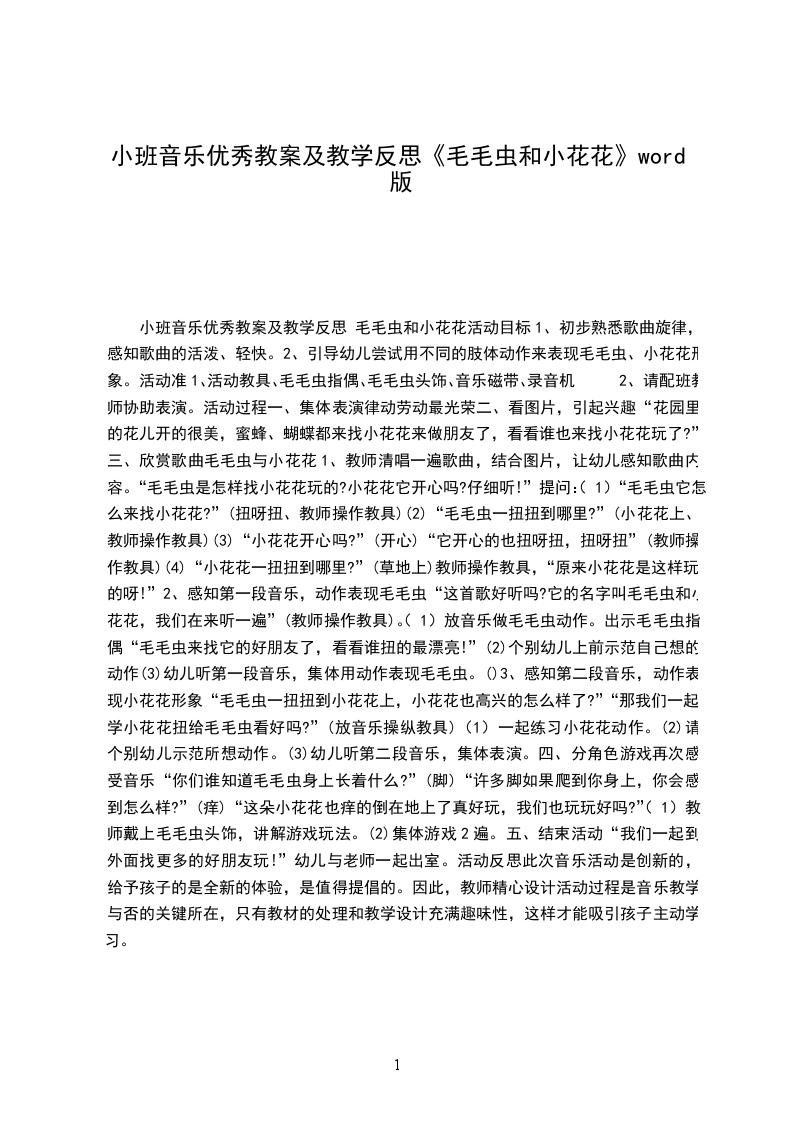 小班音乐优秀教案及教学反思 毛毛虫和小花花活动目标
