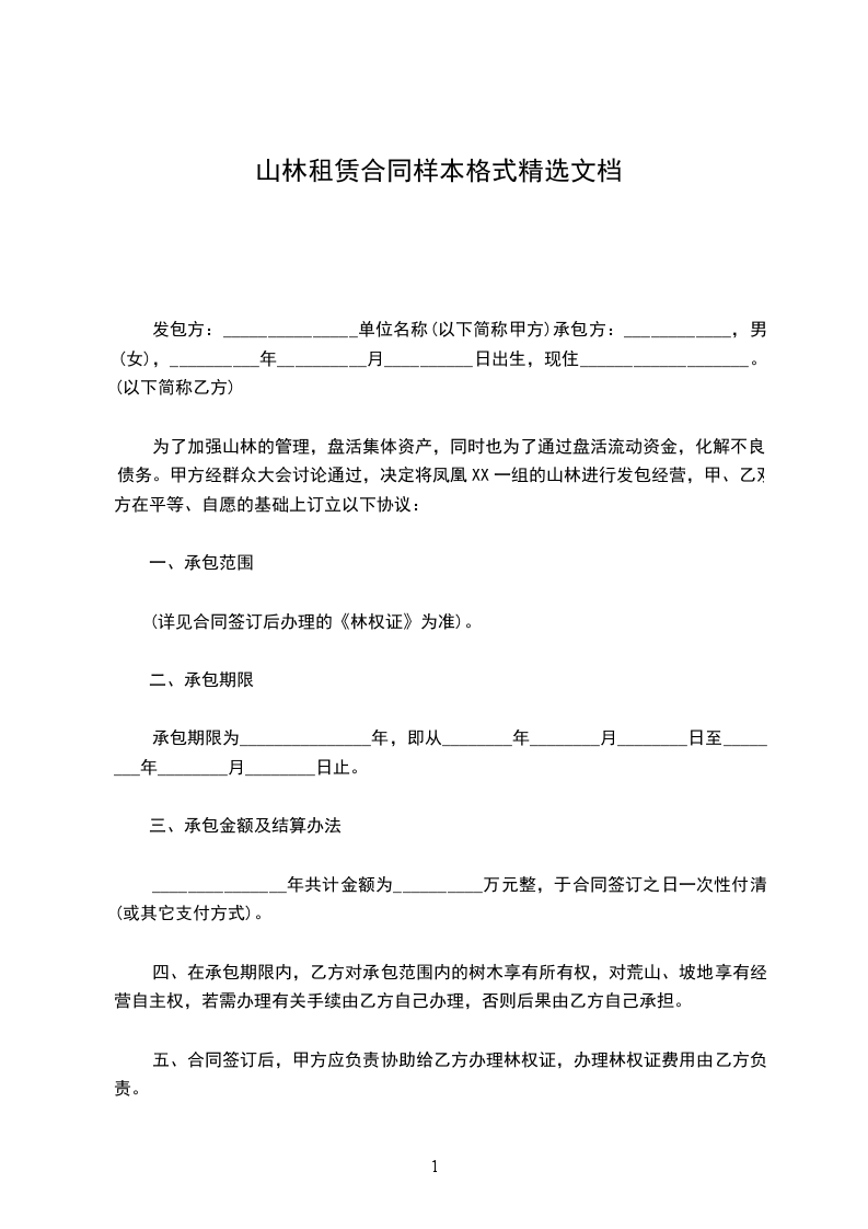为了加强山林的管理,盘活集体资产,同时也为了通过盘活流动资金,化解不良债务。甲方经群众大会讨论通过,决定将凤凰XX一组的山林进行发包经营,甲、乙双方在平等、自愿的基础上订立以下协议: