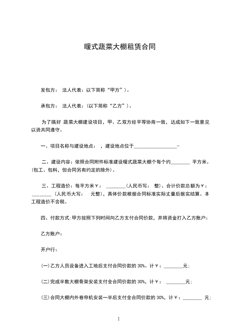 1.温室大棚租赁自________年________月________日起,至________年________月________日止。