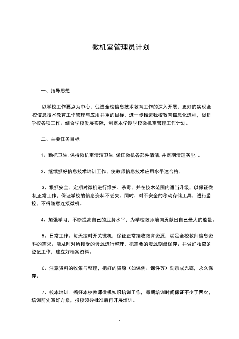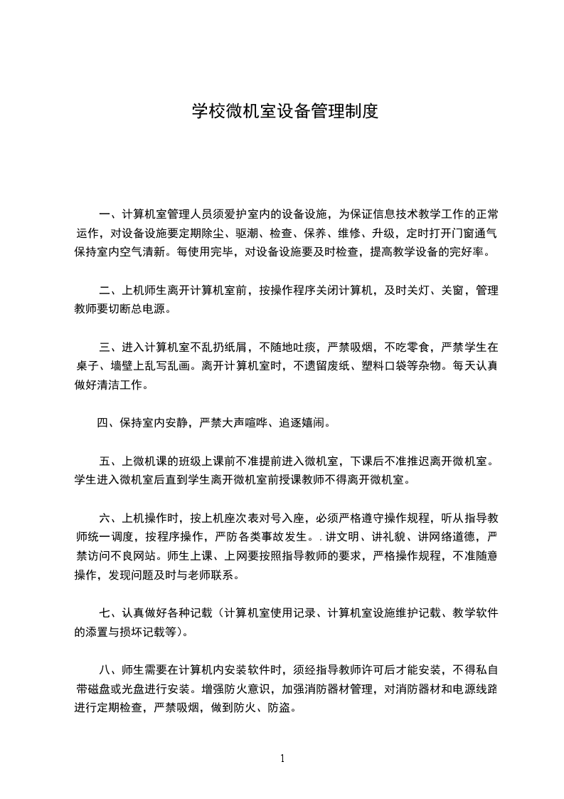 九、非管理人员未经学校安排,不得随意进入微机室。教师需在学校统一安排时间内上机,非教学时间未经安排不得随意开机。