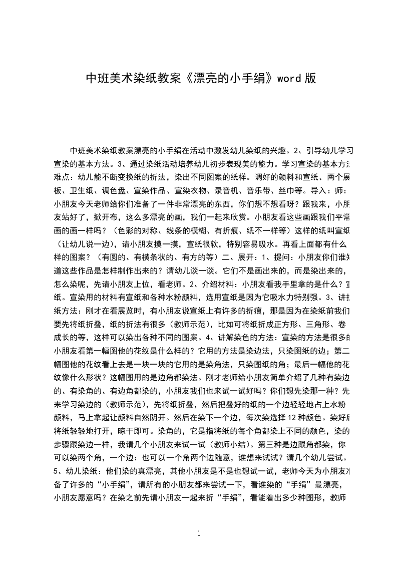 中班美术染纸教案漂亮的小手绢在活动中激发幼儿染纸的兴趣。