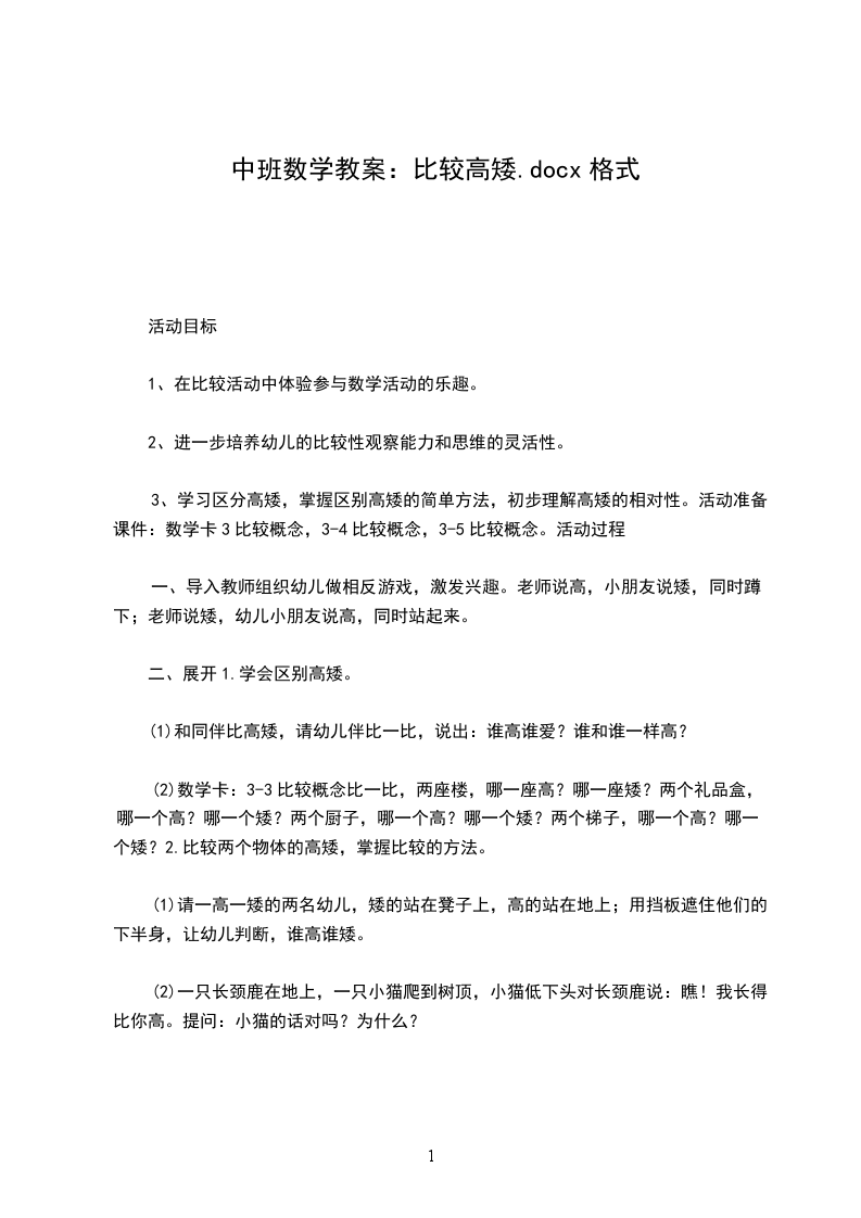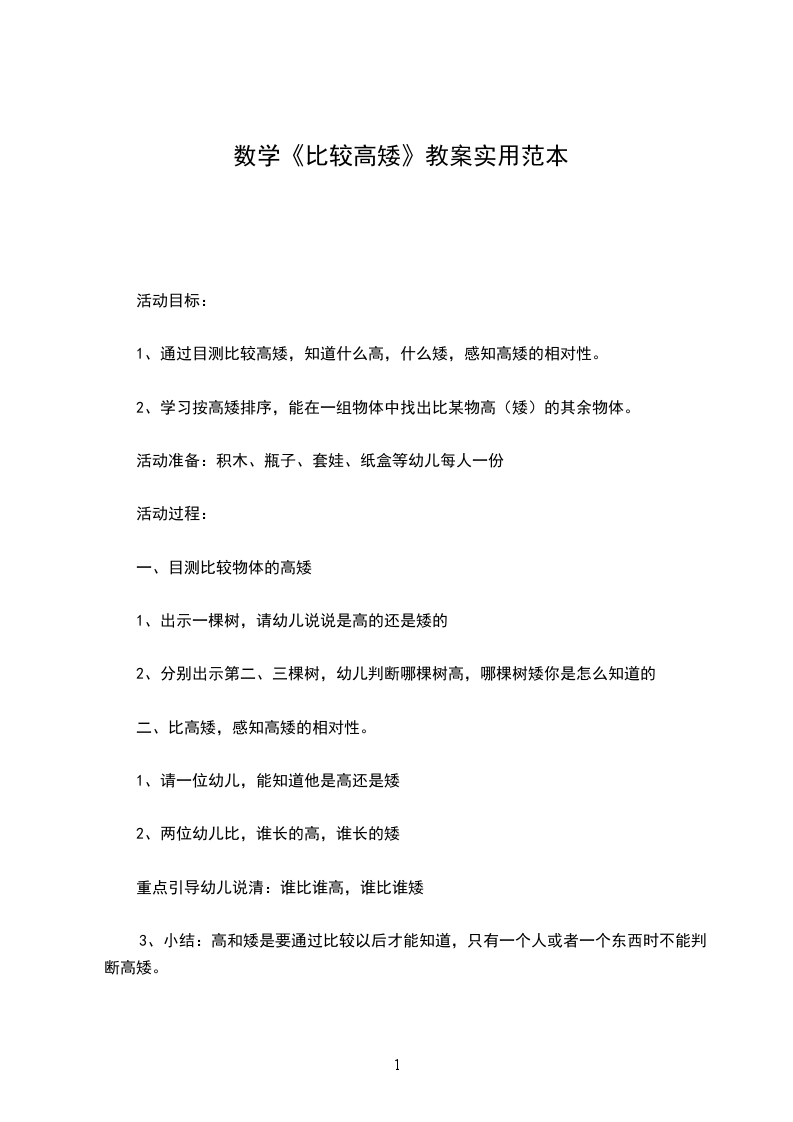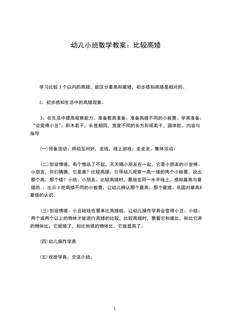 3.乐意参与比较高矮的操作并用语言交流表达。