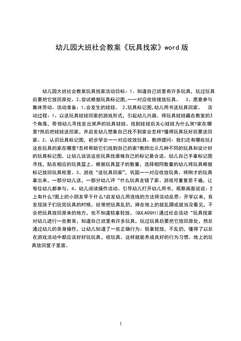 幼儿园大班社会教案玩具找家活动目标: