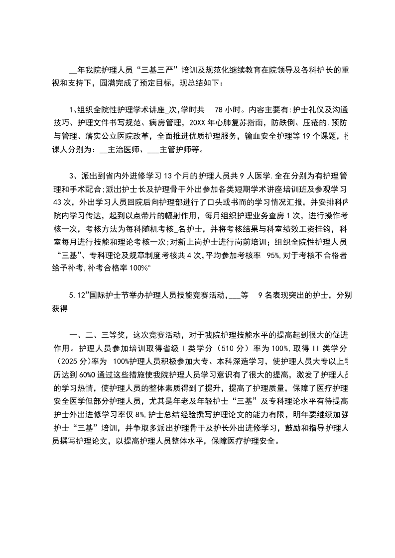 __年我院护理人员“三基三严”培训及规范化继续教育在院领导及各科护长的重视和支持下,园满完成了预定目标,现总结如下: