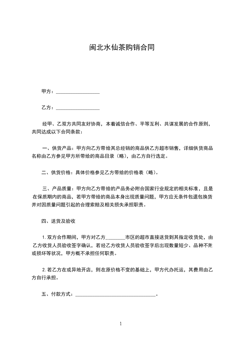 六、当乙方完成月进货量指标______________元,甲方给予乙方总进货量_______%作为销售奖励,并以货物形式返给乙方。