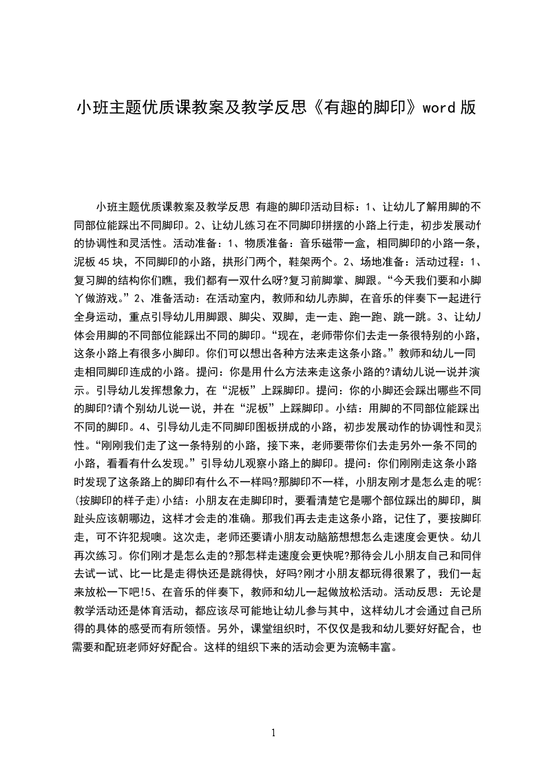 小班主题优质课教案及教学反思 有趣的脚印活动目标: