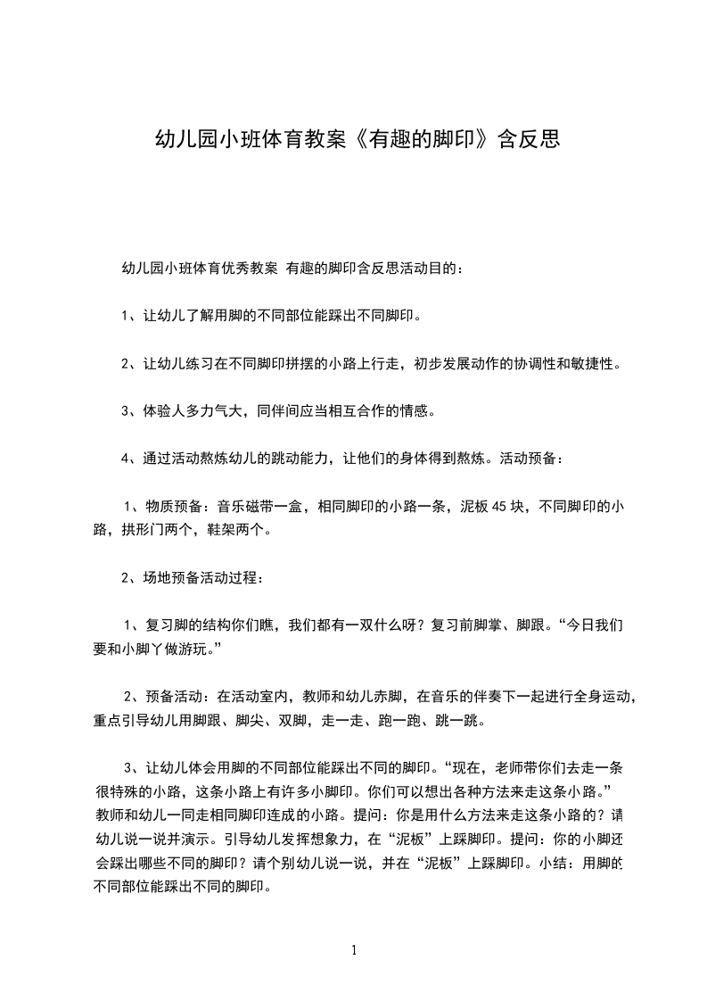 1、让幼儿了解用脚的不同部位能踩出不同脚印。