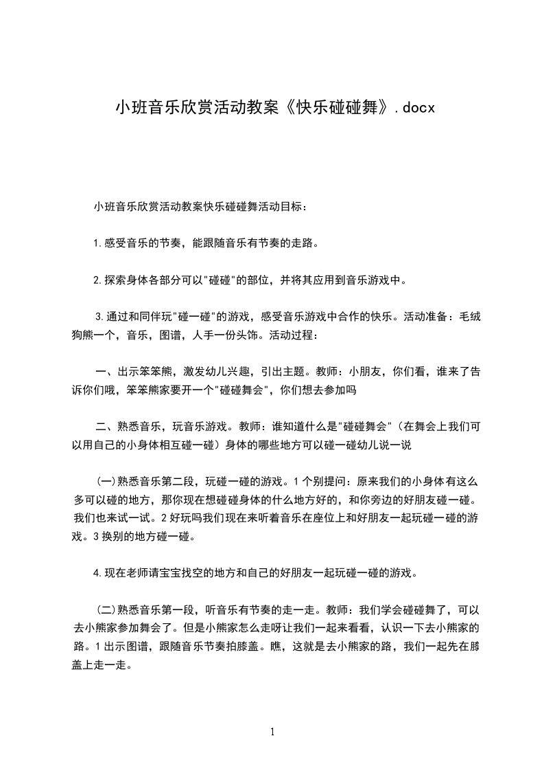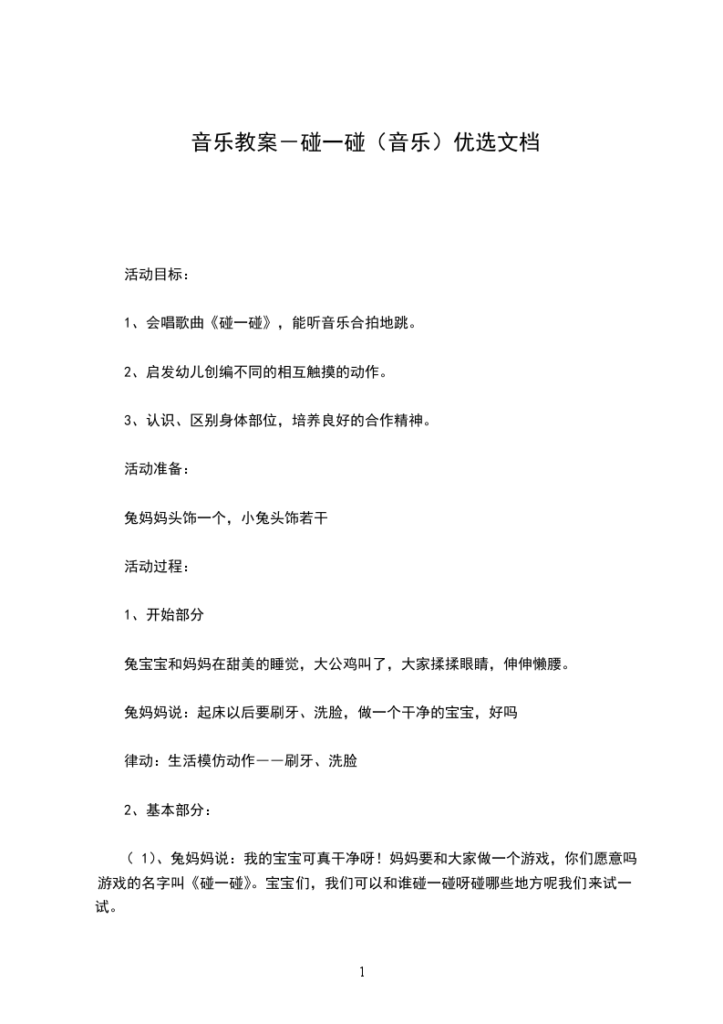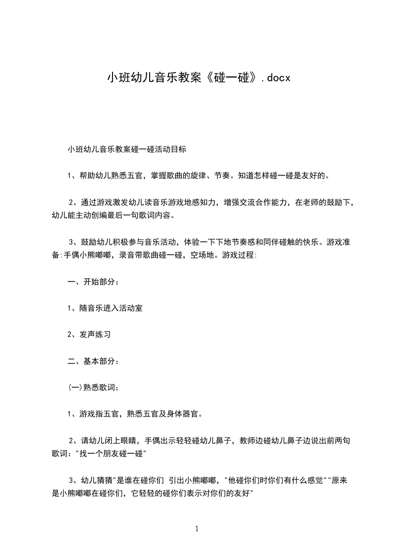 幼儿园小班音乐优秀教案碰一碰含反思活动目标: