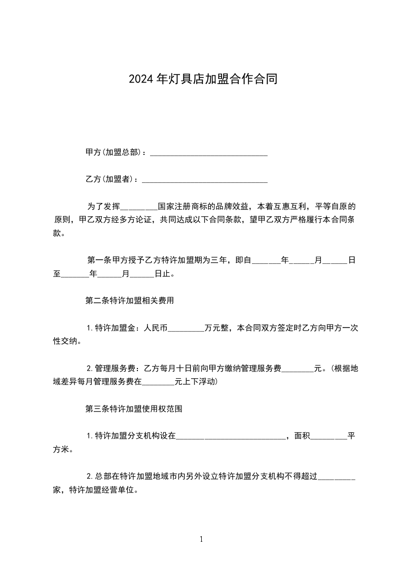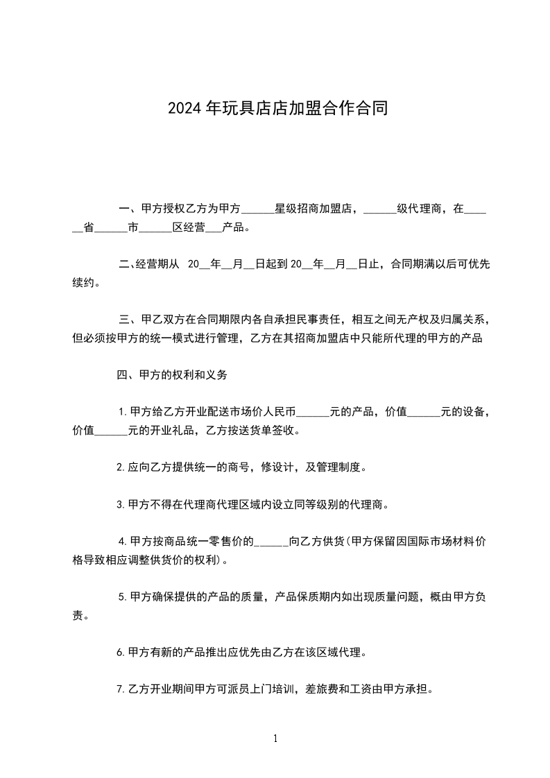 6.从甲,乙双方签订合同之日起三个月内乙方必须开店营业,反之甲方将不退还乙方所交纳的保证金5000元(伍仟圆整),并不再为乙方保留免收加盟费的名额。